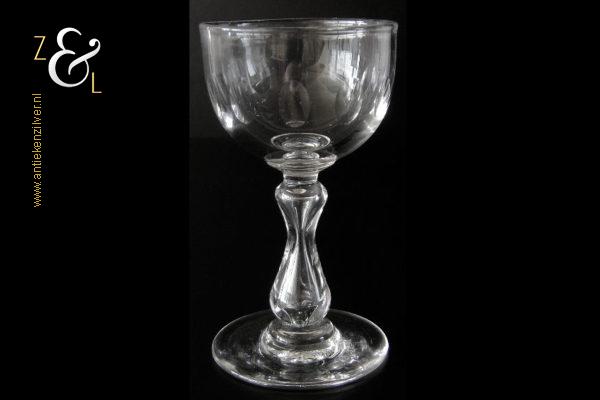Dit mondgeblazen en geheel op de hand vervaardigde wijnglas / portglas model Stephenson (massief been) is gemaakt bij de Glasfabriek Leerdam en stamt uit het begin van de 20e eeuw. Het handgeslepen en gepolijste glas heeft een balustervormige steel en een ronde kelk met twaalf geslepen olijven. Het wijnglas / portglas weegt 108 gram en is 11.2 cm hoog. De kelk heeft een diameter van 6.1 cm en de voet heeft een diameter van 6.1 cm.