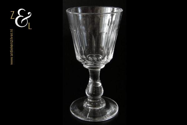 Dit mondgeblazen en geheel op de hand vervaardigde wijnglas / portglas is gemaakt in Nederland of Engeland en stamt uit het eind van de 19e eeuw en het begin van de 20e eeuw. Het handgeslepen en gepolijste glas heeft een kelk met elf ribben en een balustervormige steel. Het wijnglas / portglas weegt 106 gram en is 11.5 cm hoog. De kelk heeft een diameter van 5.7 cm en de voet heeft een diameter van 5.5 cm.