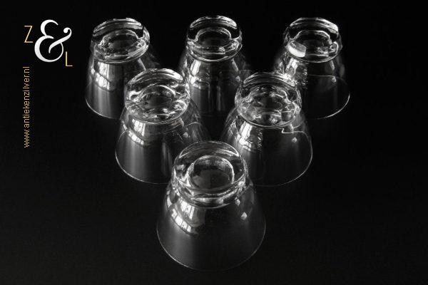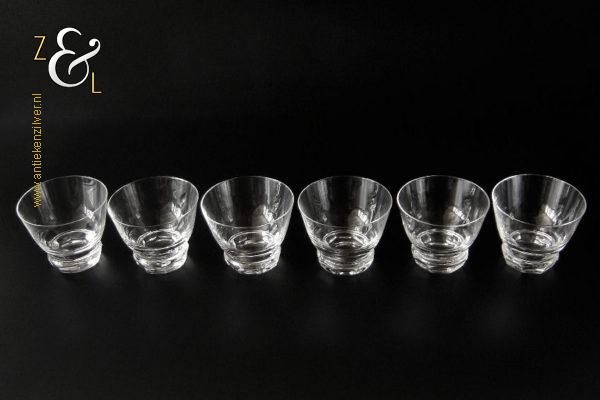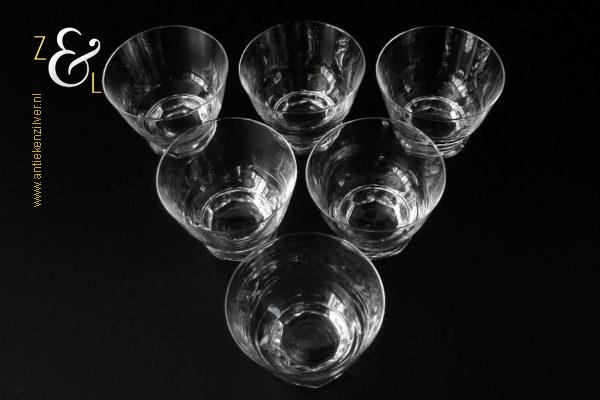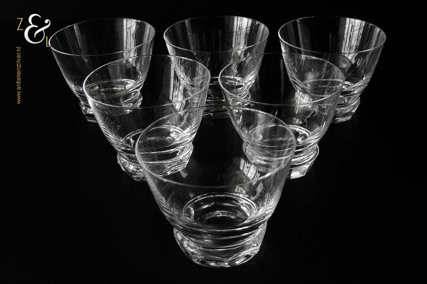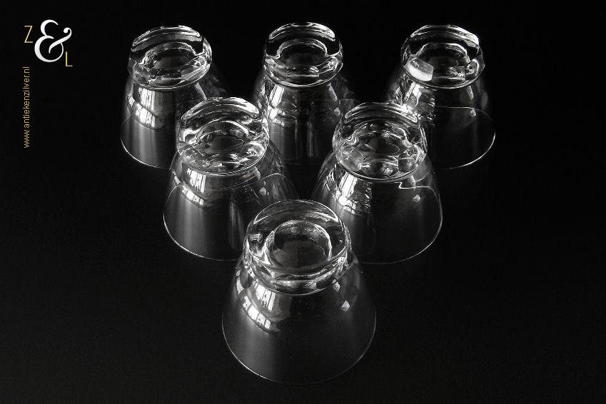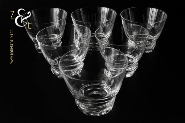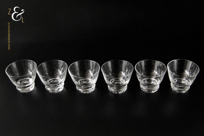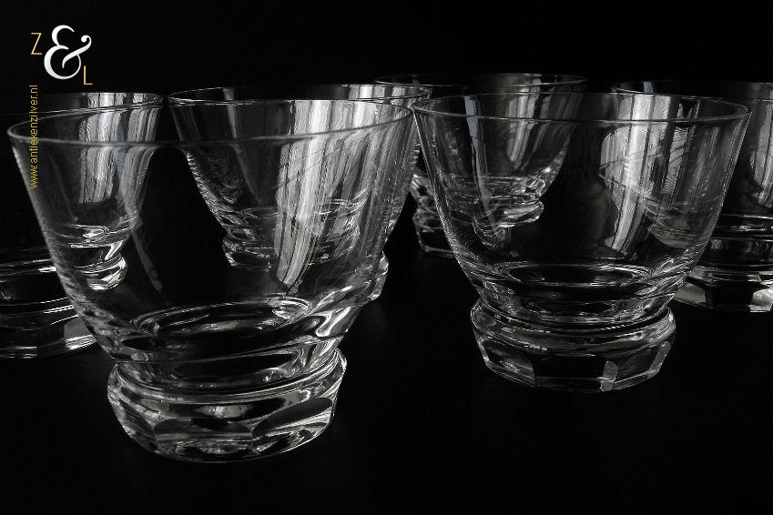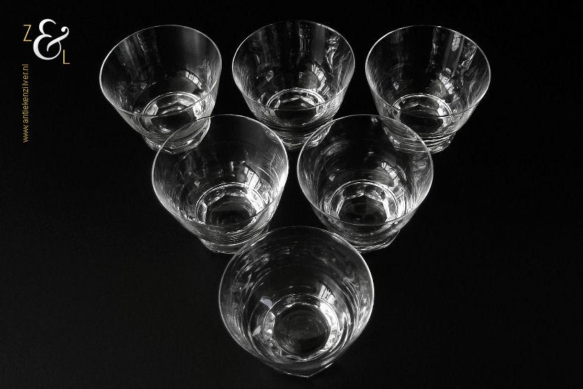Deze zes wijnglazen model Rumba zijn een ontwerp uit 1948 van de wereldberoemde Nederlandse glasontwerper Andries Dirk Copier en uitgevoerd bij de Glasfabriek Leerdam. De in Art Deco stijl en in helder kristal vervaardigde wijnglazen hebben een achtkantige voet met lenzen. De zes wijnglazen wegen 828 gram hebben een diameter van 7.9 cm en zijn 6.3 cm hoog. Het glasservies Rumba is op ambachtelijke wijze op de hand in een vorm mondgeblazen, hierdoor kunnen er kleine imperfecties optreden en hebben de glazen onderling een klein verschil in gewicht.