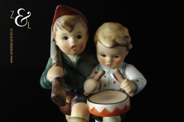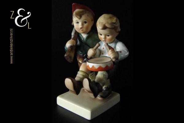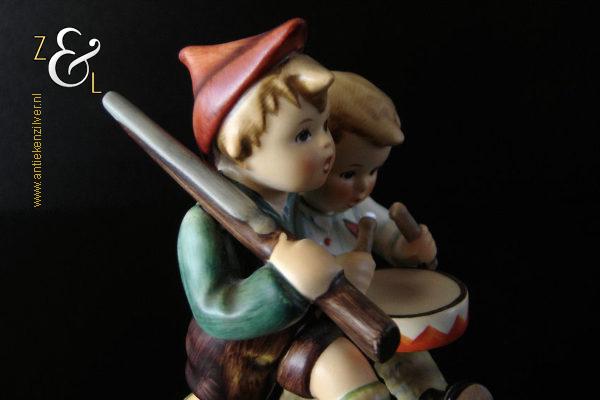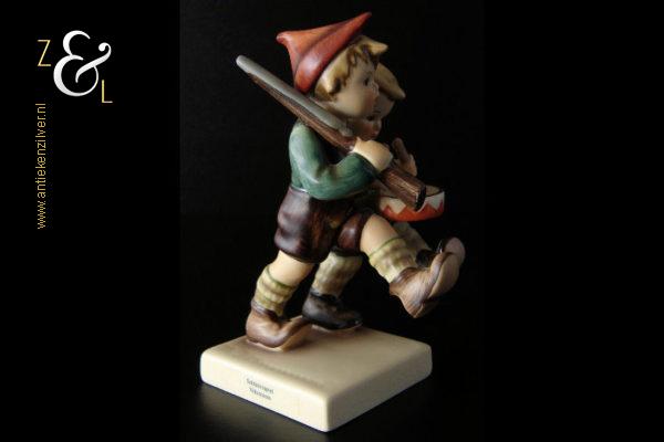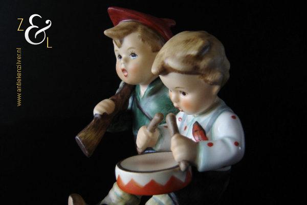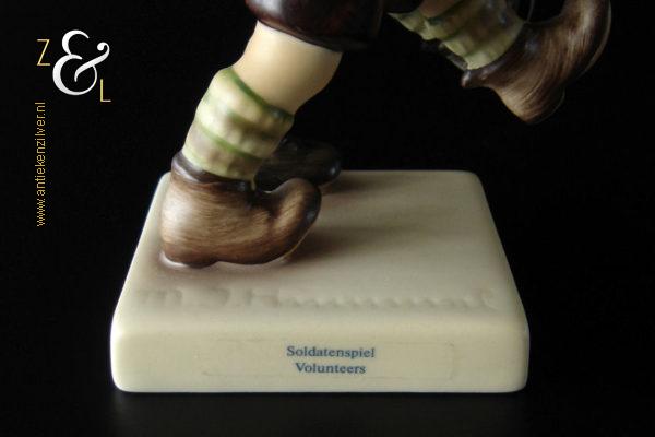 Dit Hummel beeldje model soldatenspiel / volunteers is gemaakt door de Goebel Porseleinfabriek in Oeslau Rödental West-Duitsland. Het porseleinen Hummel beeldje draagt aan de onderzijde in reliëf het modelnummer 50 2/0 en het handelsmerk TM7 dat tussen 1991 en 1999 in gebruik was. Tevens heeft het Hummel beeldje de originele sticker soldatenspiel / volunteers en is op de bovenkant van de voet in reliëf gesigneerd met M.I. Hummel. Het Hummel beeldje naar het ontwerp van zuster Maria Innocentia Hummel is in 1936 gecreëerd door beeldhouwer Reinhold Unger. Het beeldje weegt 163 gram en is 11.5 cm hoog.