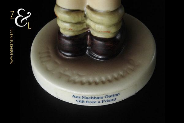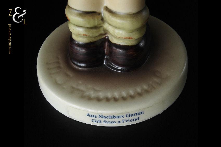 Het Hummel beeldje model aus nachbars garten / gift from a friend is een exclusief clubfiguur dat zelden op de vrije markt aangeboden wordt en daardoor een begeerd verzamelobject is.