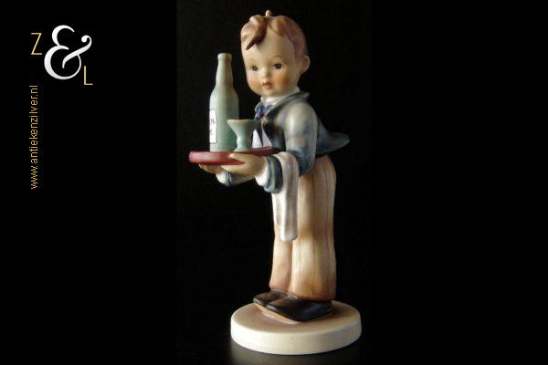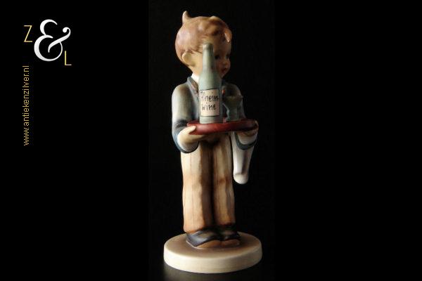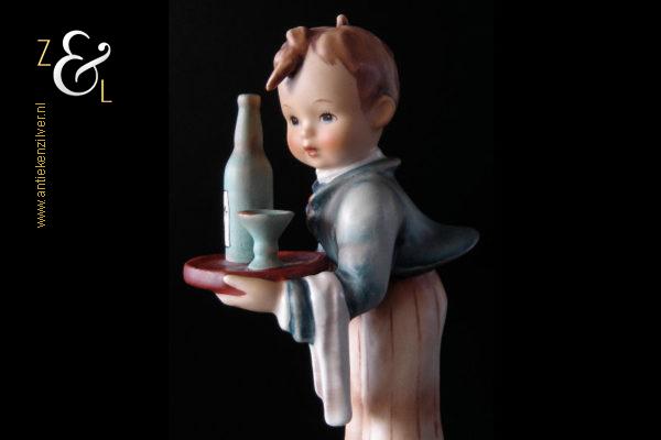 Dit Hummel beeldje model herr ober / waiter is gemaakt door de Goebel Porseleinfabriek in Oeslau Rödental West-Duitsland. Het porseleinen Hummel beeldje draagt aan de onderzijde in reliëf het modelnummer 154/0 en het handelsmerk TM5 dat tussen 1972 en 1979 in gebruik was. Tevens is het Hummel beeldje op de bovenkant van de voet in reliëf gesigneerd met M.I. Hummel. Het Hummel beeldje is in 1943 gecreëerd door beeldhouwer Arthur Moeller naar het ontwerp van zuster Maria Innocentia Hummel. Het Hummel beeldje model herr ober / waiter dat beschouwd wordt als een klassieker, is uitgevoerd in twee maten en sinds 2005 niet meer in productie. Het beeldje weegt 167 gram en is 15 cm hoog. Het beeldje heeft héél lichte sporen van craquelure aan de onderzijde en zijkant van de voet.