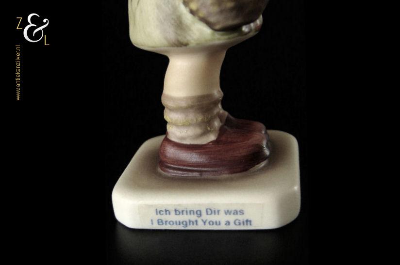 Dit Hummel beeldje model ich bring dir was / i brought you a gift is gemaakt door de Goebel Porseleinfabriek in Oeslau Rödental West-Duitsland. Het porseleinen Hummel beeldje draagt aan de onderzijde in reliëf het modelnummer 479, het merk van de M.I. Hummel club en het handelsmerk TM7 dat tussen 1991 en 1999 in gebruik was, met daaronder in reliëf het jaar 1987. Tevens heeft het Hummel beeldje de originele sticker ich bring dir was / i brought you a gift en is aan de zijkant van de voet in reliëf gesigneerd met M.I. Hummel. Het Hummel beeldje naar het ontwerp van zuster Maria Innocentia Hummel is in 1987 gecreëerd door beeldhouwer Gerhard Skrobek. Het beeldje weegt 51 gram en is 10 cm hoog.