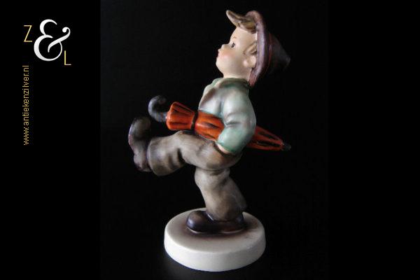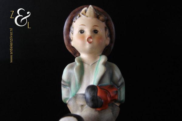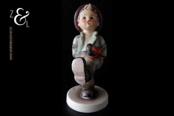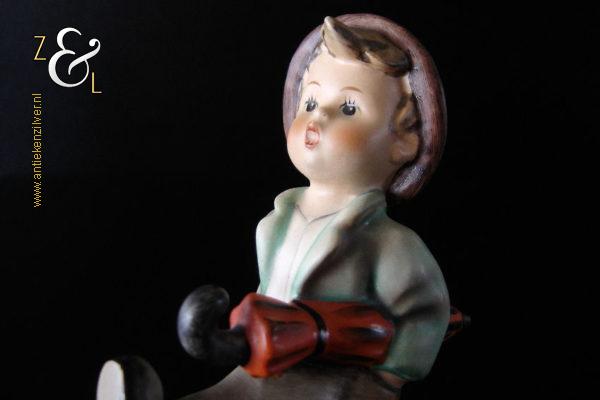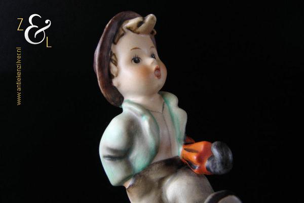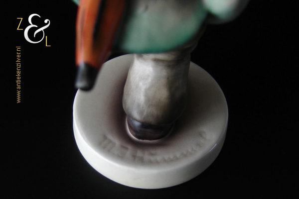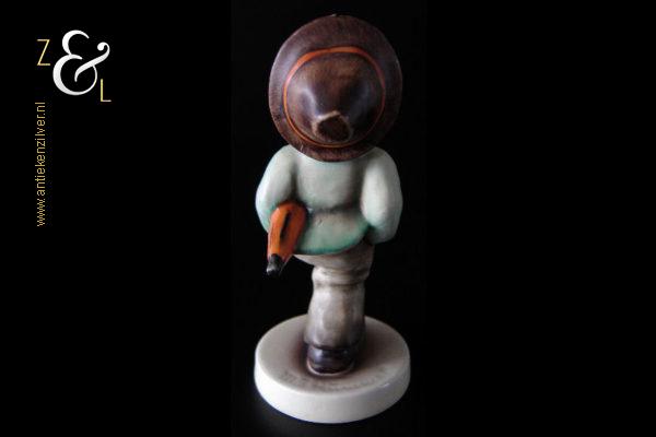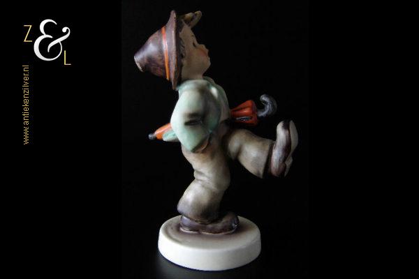 Dit Hummel beeldje model hinaus in die ferne / happy traveler is gemaakt door de Goebel Porseleinfabriek in Oeslau Rödental West-Duitsland. Het porseleinen Hummel beeldje draagt aan de onderzijde in reliëf het modelnummer 109/0 en het handelsmerk TM3 dat tussen 1960 en 1972 in gebruik was. Tevens is het Hummel beeldje op de bovenkant van de voet in reliëf gesigneerd met M.I. Hummel. Het Hummel beeldje dat beschouwd wordt als een echte klassieker is in 1938 gecreëerd door beeldhouwer Arthur Moeller naar het ontwerp van zuster Maria Innocentia Hummel. Het beeldje weegt 100 gram en is 12 cm hoog.