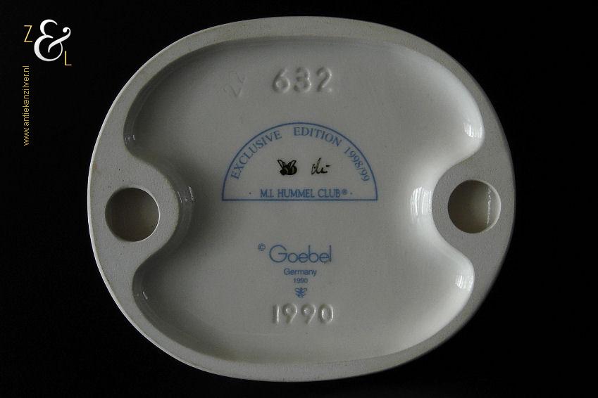 Dit Hummel beeldje model ich spiel gern bal / at play is gemaakt door de Goebel Porseleinfabriek in Oeslau Rödental West-Duitsland. Het porseleinen Hummel beeldje draagt aan de onderzijde in reliëf het modelnummer 632, het merk van de M.I. Hummel club exclusive edition 1998/99 en het handelsmerk TM7 dat tussen 1991 en 1999 in gebruik was, met daaronder in reliëf het jaar 1990. Tevens heeft het Hummel beeldje de originele sticker ich spiel gern bal / at play en is aan de bovenkant van de voet in reliëf gesigneerd met M.I. Hummel. Het Hummel beeldje naar het ontwerp van zuster Maria Innocentia Hummel is in 1990 gecreëerd door beeldhouwer Helmut Fischer. Het beeldje weegt 143 gram en is 8.5 cm hoog.