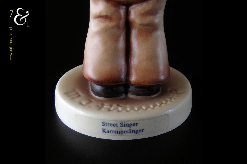 Dit Hummel beeldje model kammersänger / street singer is gemaakt door de Goebel Porseleinfabriek in Oeslau Rödental West-Duitsland. Het porseleinen Hummel beeldje draagt aan de onderzijde in reliëf het modelnummer 131 en het handelsmerk TM8 dat vanaf 2000 tot heden in gebruik is. Tevens heeft het Hummel beeldje de originele sticker kammersänger / street singer en is aan de bovenzijde in reliëf gesigneerd met M.I. Hummel. Het Hummel beeldje is in 1939 gecreëerd door beeldhouwer Arthur Moeller naar het ontwerp van zuster Maria Innocentia Hummel en werd door haar persoonlijk goedgekeurd. Het beeldje weegt 91 gram en is 12.5 cm hoog.