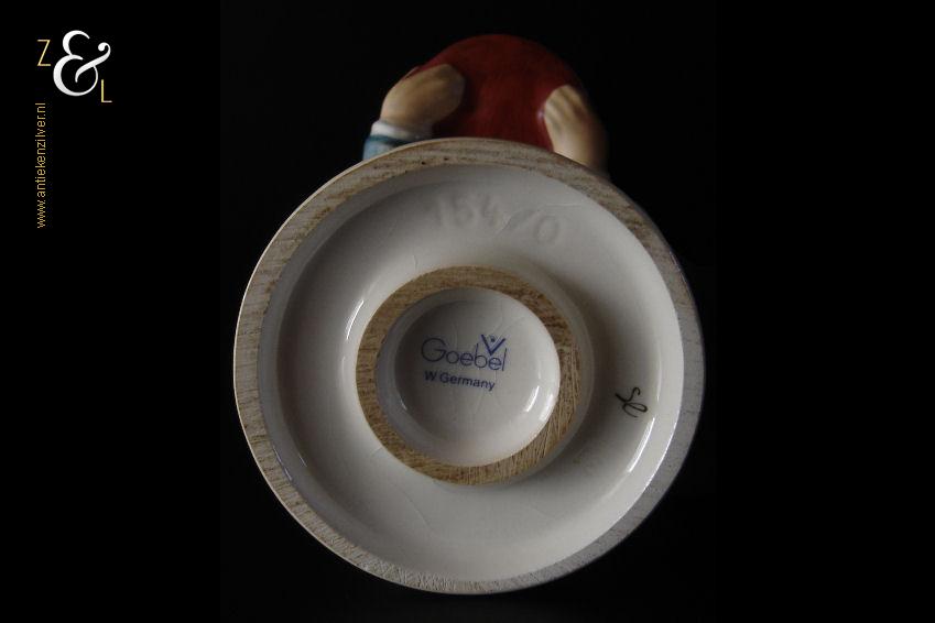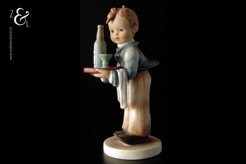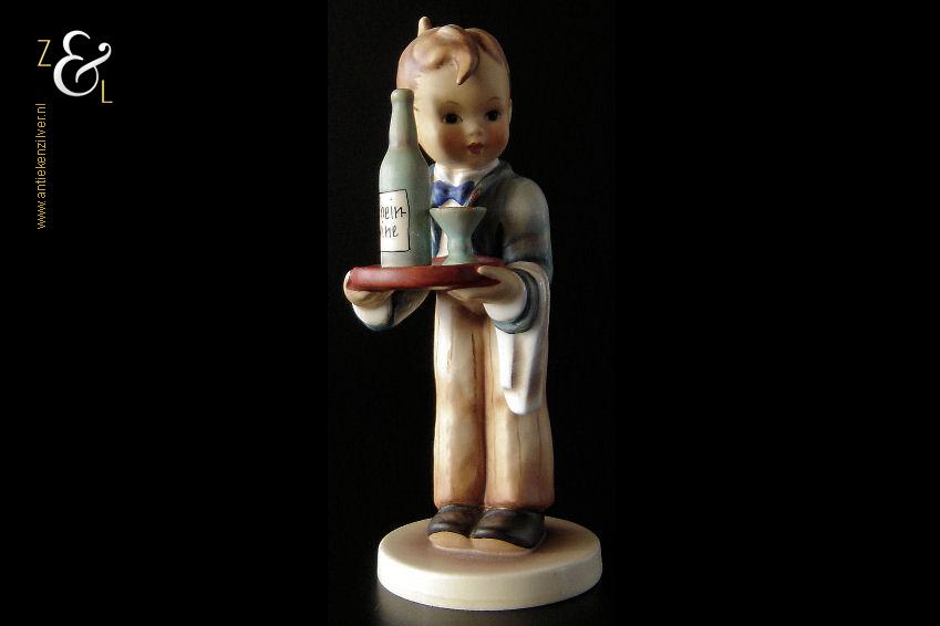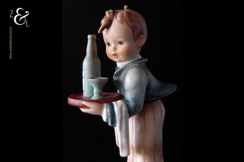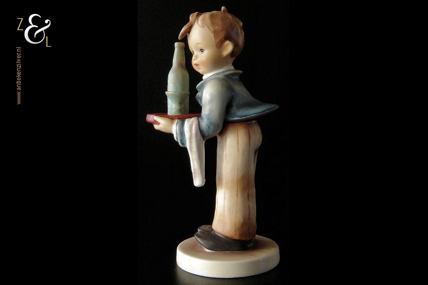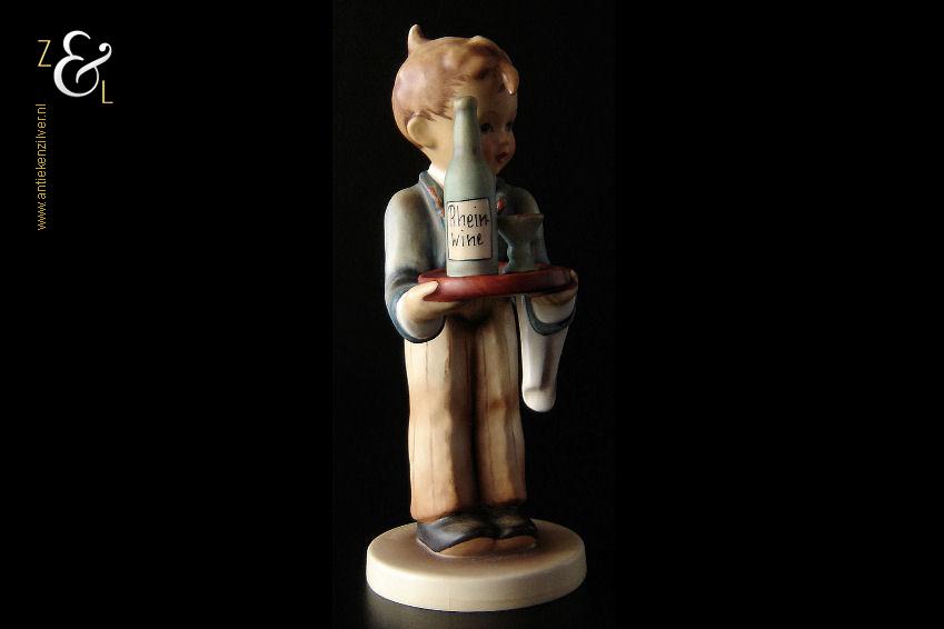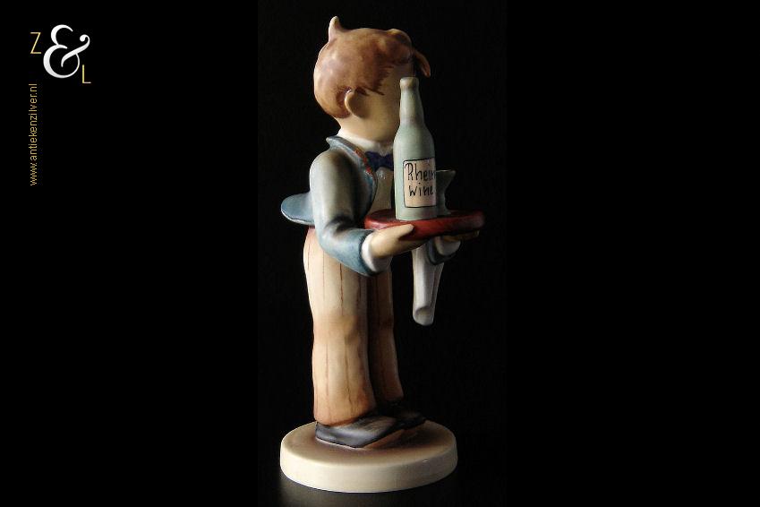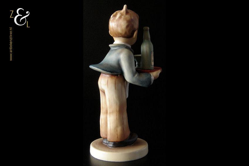 Dit Hummel beeldje model herr ober / waiter is gemaakt door de Goebel Porseleinfabriek in Oeslau Rödental West-Duitsland. Het porseleinen Hummel beeldje draagt aan de onderzijde in reliëf het modelnummer 154/0 en het handelsmerk TM5 dat tussen 1972 en 1979 in gebruik was. Tevens is het Hummel beeldje op de bovenkant van de voet in reliëf gesigneerd met M.I. Hummel. Het Hummel beeldje is in 1943 gecreëerd door beeldhouwer Arthur Moeller naar het ontwerp van zuster Maria Innocentia Hummel. Het Hummel beeldje model herr ober / waiter dat beschouwd wordt als een klassieker, is uitgevoerd in twee maten en sinds 2005 niet meer in productie. Het beeldje weegt 167 gram en is 15 cm hoog. Het beeldje heeft héél lichte sporen van craquelure aan de onderzijde en zijkant van de voet.