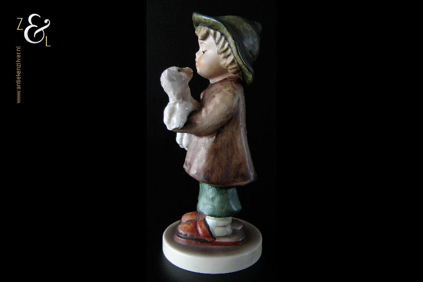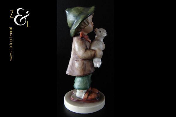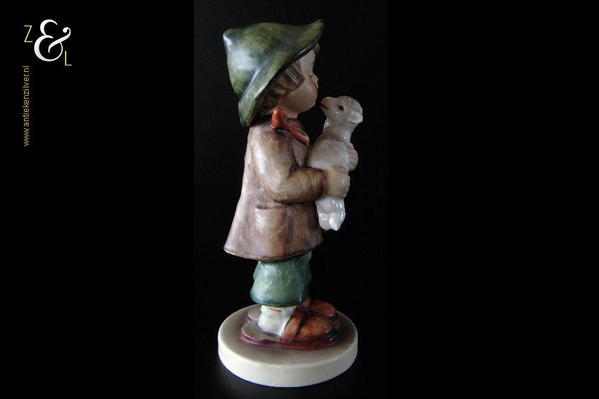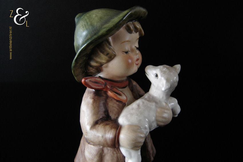 Dit Hummel beeldje model schäferbub / lost sheep is gemaakt door de Goebel Porseleinfabriek in Oeslau Rödental West-Duitsland. Het porseleinen Hummel beeldje draagt aan de onderzijde in reliëf het modelnummer 68/0 en het handelsmerk TM3 dat tussen 1960 en 1972 in gebruik was. Tevens is het Hummel beeldje op de zijkant van de voet in reliëf gesigneerd met M.I. Hummel. Het Hummel beeldje is in 1937 gecreëerd door beeldhouwer Arthur Moeller naar het ontwerp van zuster Maria Innocentia Hummel. Het beeldje weegt 134 gram en is 13.7 cm hoog.