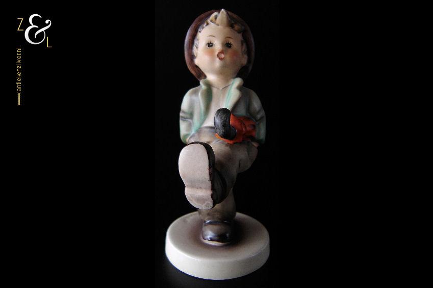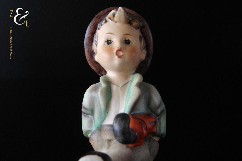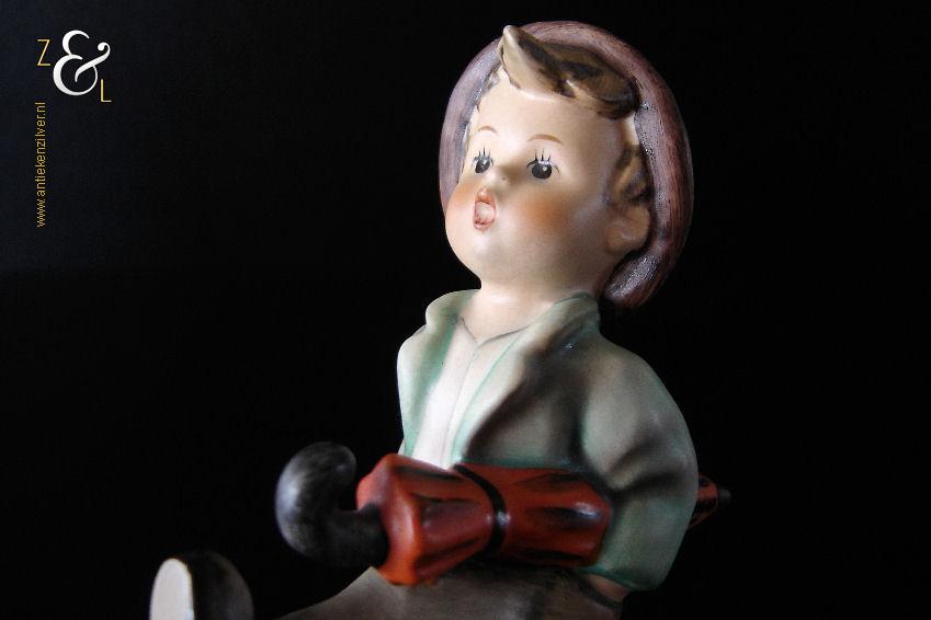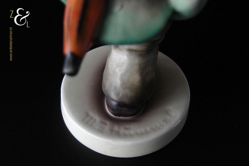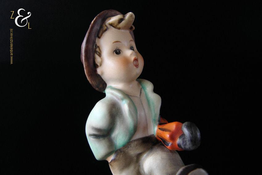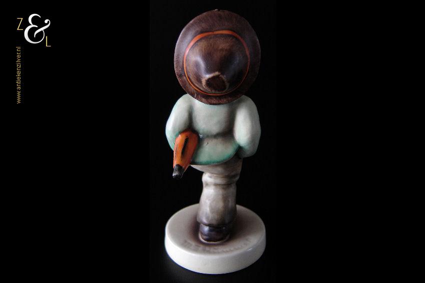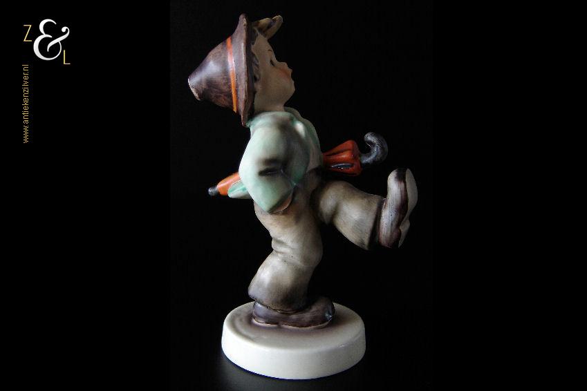 Dit Hummel beeldje model hinaus in die ferne / happy traveler is gemaakt door de Goebel Porseleinfabriek in Oeslau Rödental West-Duitsland. Het porseleinen Hummel beeldje draagt aan de onderzijde in reliëf het modelnummer 109/0 en het handelsmerk TM3 dat tussen 1960 en 1972 in gebruik was. Tevens is het Hummel beeldje op de bovenkant van de voet in reliëf gesigneerd met M.I. Hummel. Het Hummel beeldje dat beschouwd wordt als een echte klassieker is in 1938 gecreëerd door beeldhouwer Arthur Moeller naar het ontwerp van zuster Maria Innocentia Hummel. Het beeldje weegt 100 gram en is 12 cm hoog.