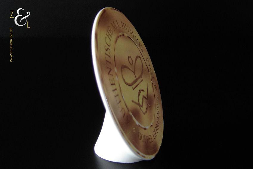Dit verkoopdisplay is gemaakt door de Goebel Porseleinfabriek in Oeslau Rödental West-Duitsland. Het porseleinen verkoopdisplay met de tekst “Authentische M.I. Hummel Figur Goebel Germany” draagt het handelsmerk TM6 dat tussen 1979 en 1990 in gebruik was en in reliëf het modelnummer 030. Het verkoopdisplay weegt 102 gram en heeft een diameter van 10 cm en is 4.5 cm diep.