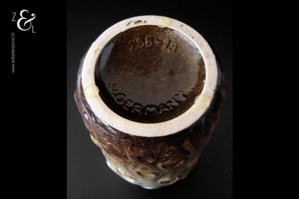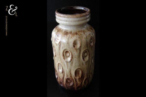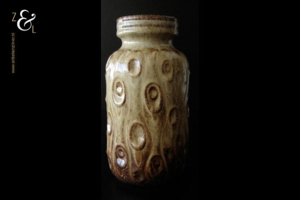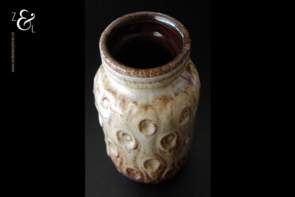 Deze vaas model Koralle is ontworpen door A. Seide en is gemaakt bij de keramiekfabriek Scheurich in de plaats Kleinheubach Duitsland. De aardewerk vaas die uit de zestiger jaren stamt is aan de onderzijde gemerkt met W. Germany en het modelnummer 288-18. De vaas weegt 589 gram is 18 cm hoog en heeft een diameter van 9.4 cm. De keramiekfabriek Scheurich produceerde dit model in diverse glazuurkleuren, deze vaas is uitgevoerd in een beige bruine glazuur. Het papieren etiket is verloren gegaan.