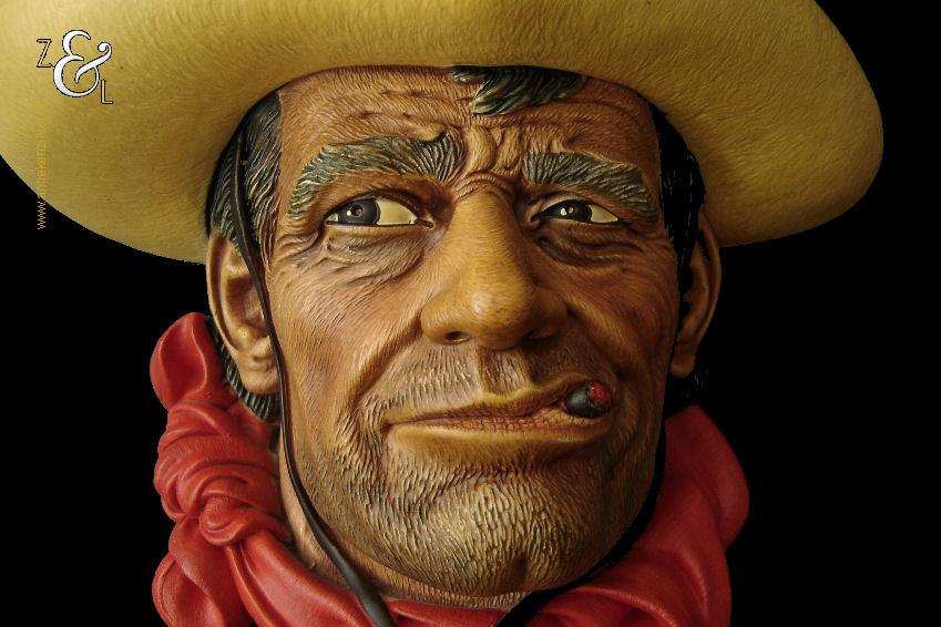 Rawhide was een Amerikaanse westernserie die op CBS van 1959 tot 1966 werd uitgezonden. Het introlied “Rawhide” gezongen door Frankie Lane werd door deze serie zeer bekend. Tevens speelde acteur Clint Eastwood hier op jonge leeftijd de cowboy “Rowdy Yates”. Of de W.H. Bossons Company geïnspireerd is tot het maken van dit bossons beeld / plastiek / wandmasker “Rawhide” is niet bekend.