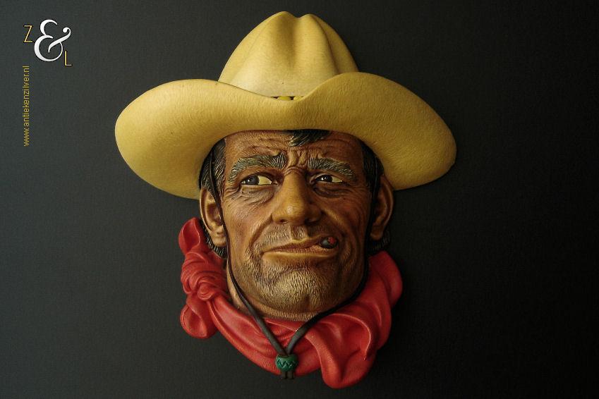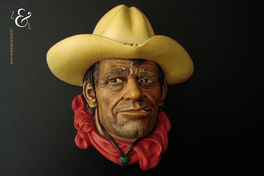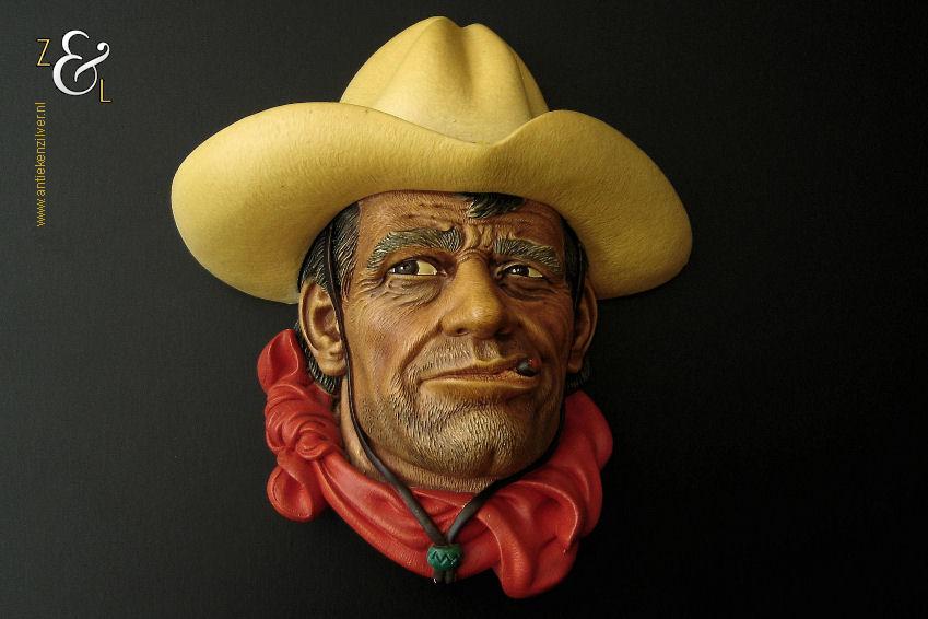 Rawhide was een Amerikaanse westernserie die op CBS van 1959 tot 1966 werd uitgezonden. Het introlied “Rawhide” gezongen door Frankie Lane werd door deze serie zeer bekend. Tevens speelde acteur Clint Eastwood hier op jonge leeftijd de cowboy “Rowdy Yates”. Of de W.H. Bossons Company geïnspireerd is tot het maken van dit bossons beeld / plastiek / wandmasker “Rawhide” is niet bekend.