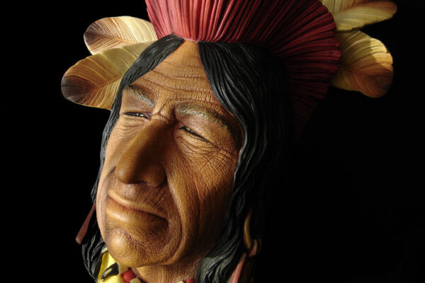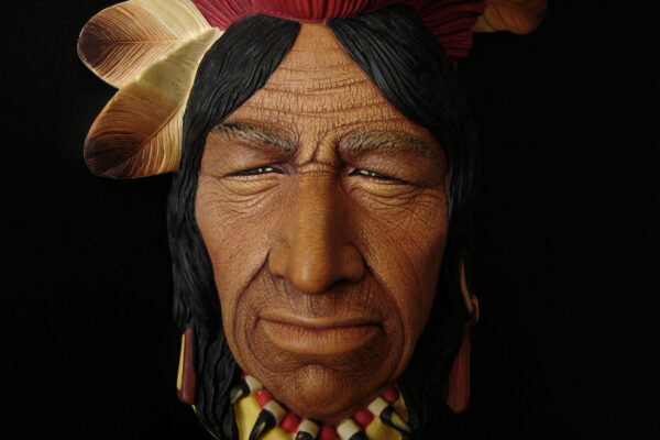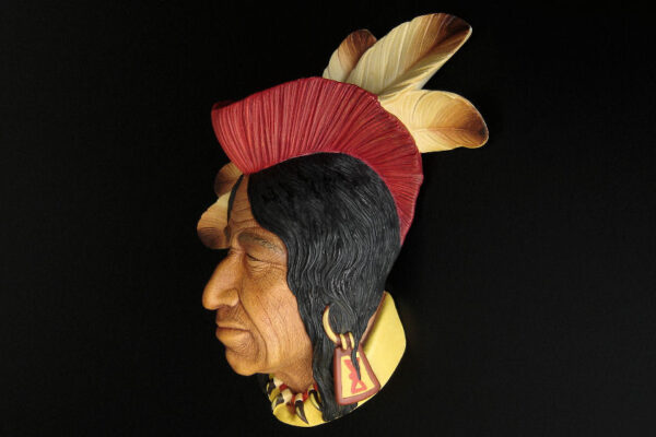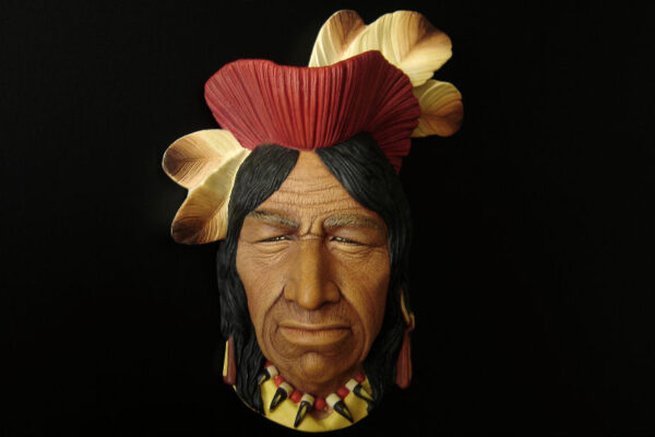 Dit beeld / plastiek / wandmasker model “Tecumseh” maakt deel uit van de historische collectie serie “A” die 18 cm tot 20 cm meten.