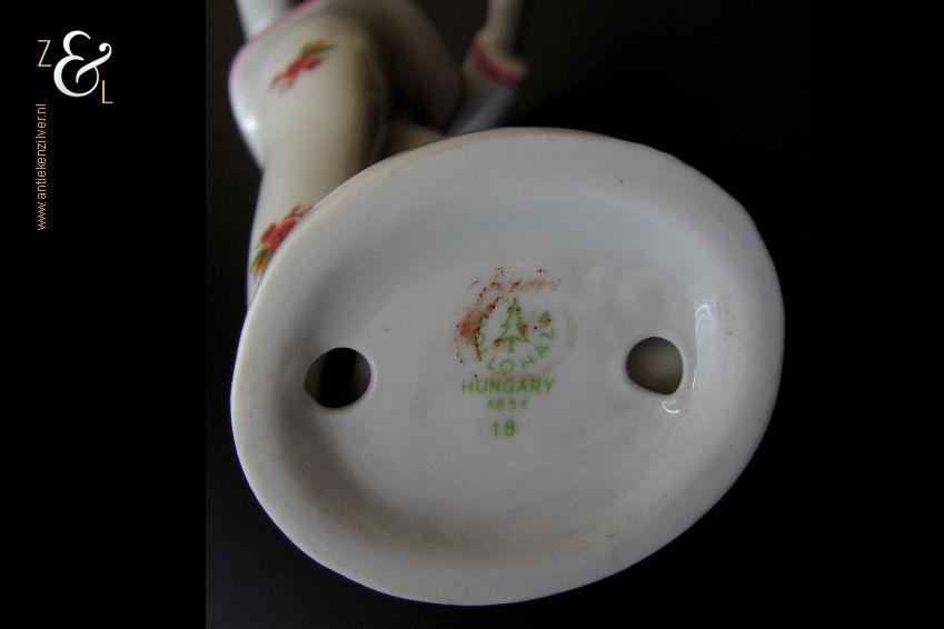Hollóháza porselein opgericht in 1777 is een van de oudste porseleinfabrieken van Europa en het is de oudste van Hongarije. De fabriek die als glasfabriek is begonnen staat nog steeds op dezelfde plaats in het landelijke noordoosten van Hongarije temidden van weelderige bossen en glooiende heuvels. In 1831 besloot de toenmalige eigenaar van de fabriek, Mihály Károlyi om in plaats van glas keramiek te gaan produceren. Dit was een logische beslissing omdat in de directe omgeving van de fabriek porseleinaarde gevonden werd. In 1857 kwam de fabriek in handen van Ferenc Istvanyi. Hoewel er in het begin eenvoudig porselein werd gemaakt ging men in de 20e eeuw het meer decoratieve porselein zoals beeldjes produceren. Na de 1e Wereldoorlog in 1923 maakt de fabriek een herstart, echter na een faillissement leeft de fabriek weer op in 1939 onder een nieuwe eigenaar genaamd Karoly Szakmary. Hij moderniseert de verouderde fabriek en verbetert en vergroot de productie zodat de fabriek eindelijk kan voldoen aan de smaak en behoeften van klanten over de gehele wereld. Jammer genoeg, wordt Karoly Szakmary verhinderd om zijn plannen te volbrengen omdat de fabriek door de communistische staat na de 2e Wereldoorlog in 1948 wordt genationaliseerd. Na de nationalisering mocht de Hollóháza porseleinfabriek alleen industrieel porselein fabriceren. In 1957 wordt er weer commercieel porselein gemaakt en vanaf de jaren zestig nemen jonge en getalenteerde kunstenaars de nieuwe productontwikkeling over.