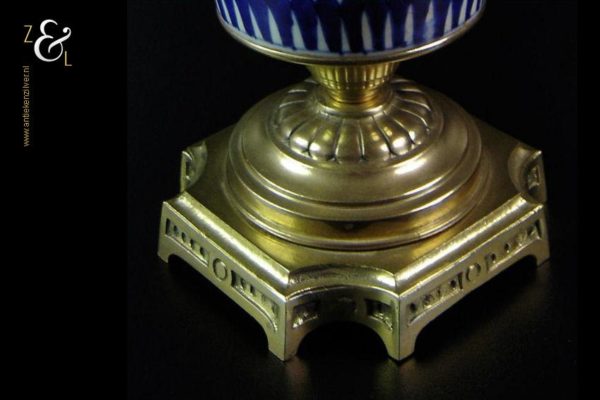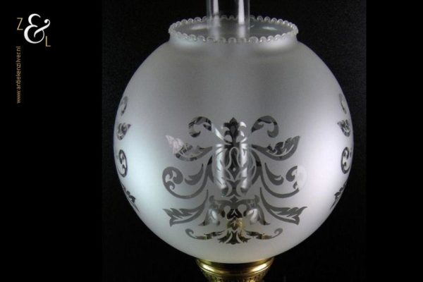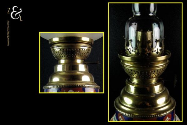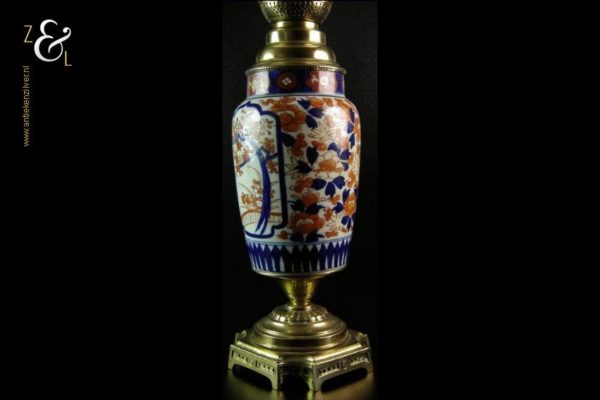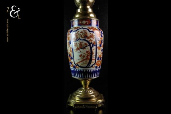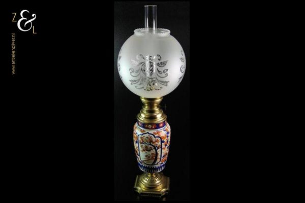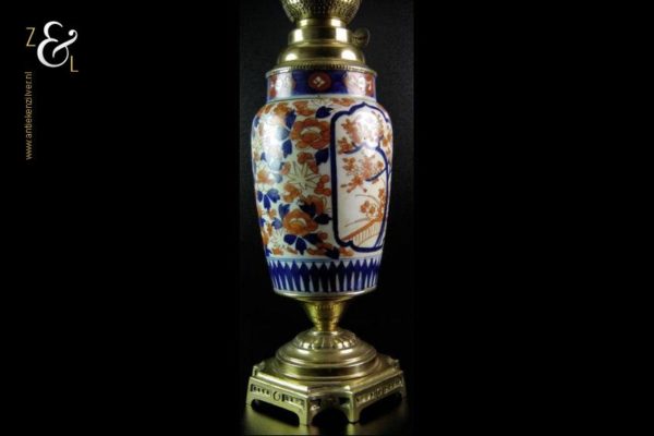 Deze olielamp die uit het eind van de 19e begin 20e eeuw stamt bestaat uit een porseleinen Imari vaas, uit de zogenaamde Meiji periode die liep van 1868 tot 1912, een vierkante bronzen voet, een lampenoliebrander met lampenglas en de nog originele antieke geëtste glazen bol. De olielamp is tot aan de bovenkant van het lampenglas 62 cm hoog. De Imari vaas is 18 cm hoog en het geheel weegt plusminus 2000 gram.