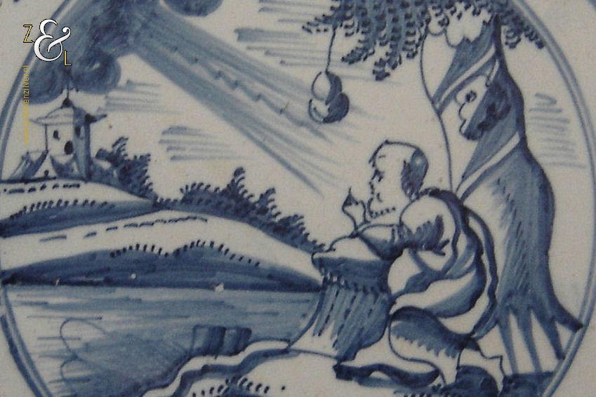De vroegst gedateerde bijbeltegel stamt uit 1659 waarop het verhaal is afgebeeld uit Matteus (8:5). Een Romeinse centurio komt naar Jezus om hulp te vragen voor zijn slaaf die verlamd is en pijn lijdt.