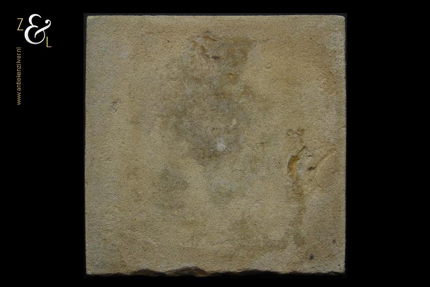 Deze tegel is aan het einde van de 17e eeuw begin 18e eeuw gemaakt in Nederland. De op de hand beschilderde blauw witte tegel heeft de afbeelding van een herder in een landschap met in zijn rechterhand een staf en in zijn linkerhand een hoed, op de achtergrond staat een hek met twee schapen of koeien, de hoeken zijn gedecoreerd met het hoekmotief spin. De tegel weegt 229 gram meet 13.1 cm bij 12.9 cm en is 0.8 cm dik.