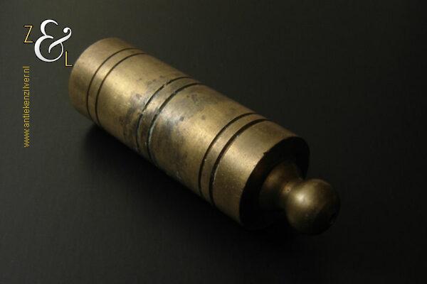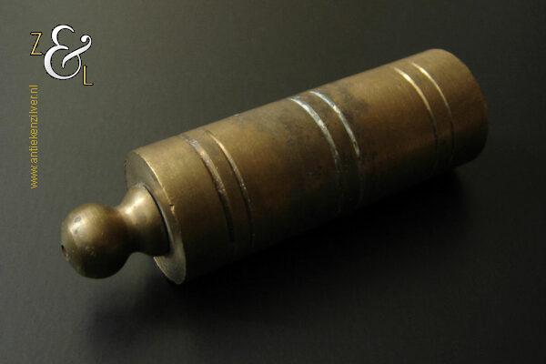 Dit schietlood, richtlood of paslood is gemaakt in Nederland en stamt uit de tweede helft van de 20e eeuw (omstreeks de vijftiger jaren). Het schietlood is gemaakt van messing en heeft een cilindervorm. Het schietlood weegt 487 gram heeft een diameter van 2.9 cm en is 9.8 cm lang.