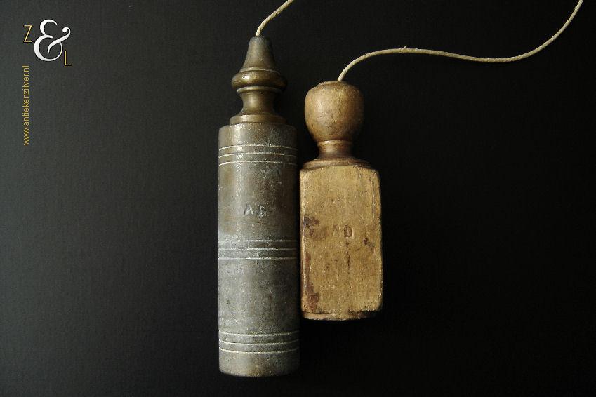 Dit schietlood, richtlood of paslood met houten klos is gemaakt in Nederland en stamt uit de eerste helft van de 20e eeuw (1900 / 1950). Het schietlood is gemaakt van messing en heeft een cilindervorm. Het schietlood weegt 564 gram heeft een diameter van 2.9 cm en is 12.5 cm lang. Op het schietlood staan de initialen of naam AD van de handwerksman.