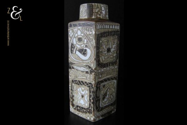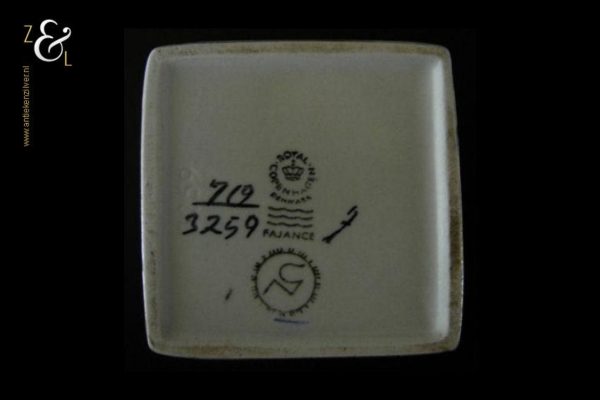 Deze vaas met vogel mozaïek afbeeldingen is gemaakt bij Royal Copenhagen te Denemarken, de fajance vaas die behoort tot de zogenaamde BACA serie is een klassieker die stamt uit de zeventiger jaren en is ontworpen door de beroemde Deense aardewerk en porselein ontwerper Nils Johan Thorvald Thorsson. Aan de onderzijde is de vaas gemerkt met Royal Copenhagen Denmark, Fajance, het decoratienummer 719/3259 en in een cirkel de initialen van Nils Thorsson. De vaas weegt 697 gram is 22.2 cm hoog en heeft een lengte van 8 cm en is 8 cm breed.