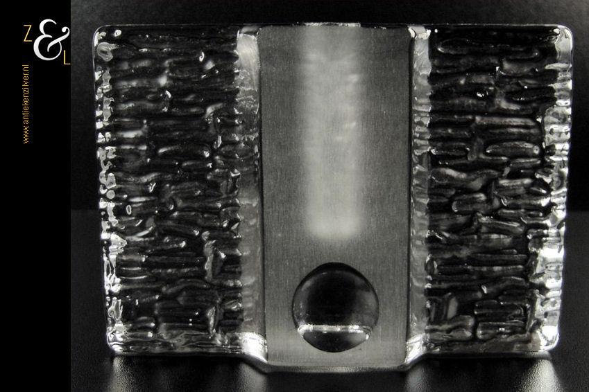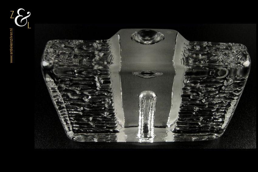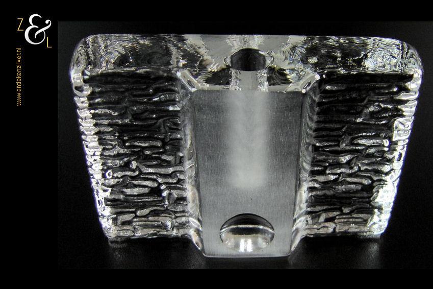 Deze in helder glas uitgevoerde vaas is in de zeventiger jaren ontworpen door Heiner Düsterhaus en gemaakt bij de Duitse glas fabrikant Walther Glas. De vaas die voor één bloem (solifleur) ontworpen is kan ook worden gebruikt als een kandelaar. De vaas weegt 1009 gram is 9.8 cm hoog 13.7 cm lang en 3.8 cm breed.