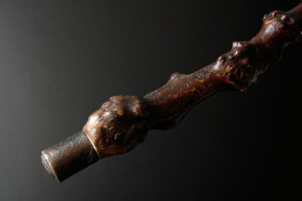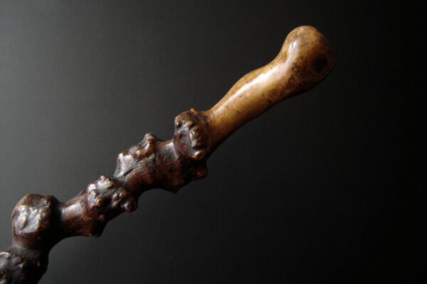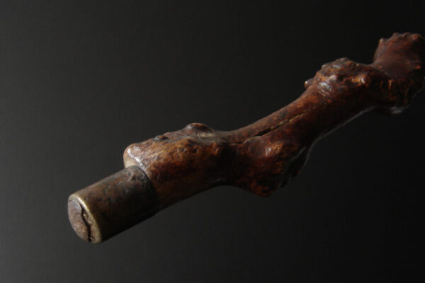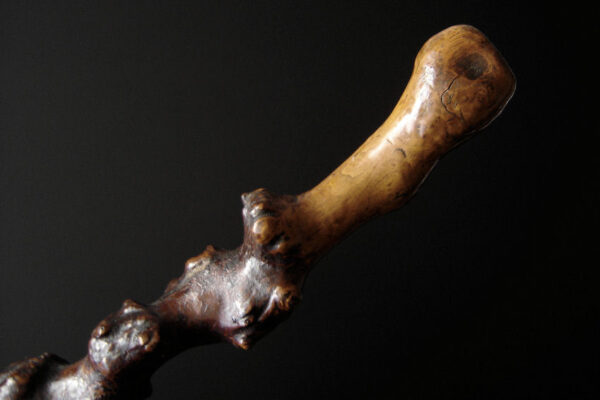 Deze antieke rustieke wandelstok is gemaakt in Nederland aan het einde van de 19e eeuw / begin 20e eeuw. De bijzonder mooie wandelstok is gemaakt van sleedoornhout* (een zéér harde houtsoort) en heeft veel kronkels, draaiingen, knopen en knoesten. De wandelstok weegt 463 gram is 94 cm lang en heeft een metalen stokpunt van 2.5 cm. De wandelstok heeft gebruikssporen.