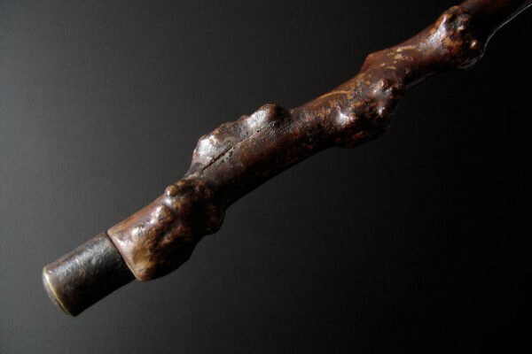 Deze antieke rustieke wandelstok is gemaakt in Nederland aan het einde van de 19e eeuw / begin 20e eeuw. De bijzonder mooie wandelstok is gemaakt van sleedoornhout* (een zéér harde houtsoort) en heeft veel kronkels, draaiingen, knopen en knoesten. De wandelstok weegt 463 gram is 94 cm lang en heeft een metalen stokpunt van 2.5 cm. De wandelstok heeft gebruikssporen.