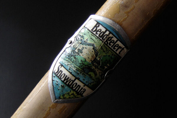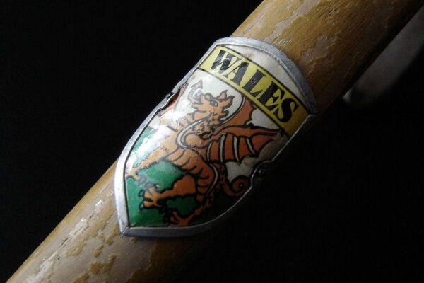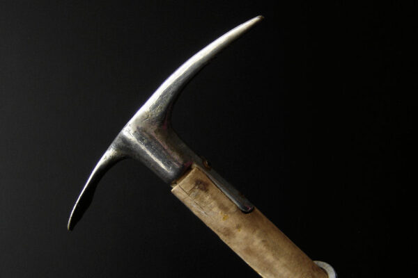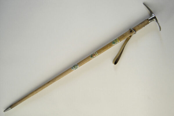 Deze wandelstok / pikhouweel / ijsbijl (pickaxe – Engels / eispickel – Duits) stamt uit het midden van de 20e eeuw omstreeks 1950. De wandelstok / pikhouweel / ijsbijl heeft een leren polslus en drie wandelstok schildjes namelijk: één van Le Col D’izoard Alt 2360 m (De Col d’Izoard is een bergpas gelegen in de Franse Alpen) één van Wales (Wales maakt als constituerend land met Engeland, Noord-Ierland en Schotland deel uit van het Verenigd Koninkrijk) en één van Beddgelert Snowdonia (Beddgelert is een dorpje in het noordwesten van het bergachtige Snowdonia National Park (Eryri), Noord Wales). De wandelstok / pikhouweel / ijsbijl waarvan het hakgedeelte 15.8 cm meet heeft een bergstokpunt van 5.3 cm is 92 cm lang en weegt 402 gram. De wandelstok / pikhouweel / ijsbijl heeft gebruikssporen.