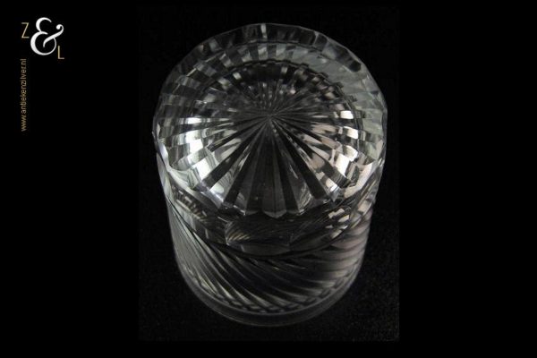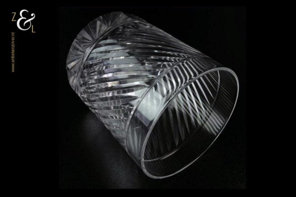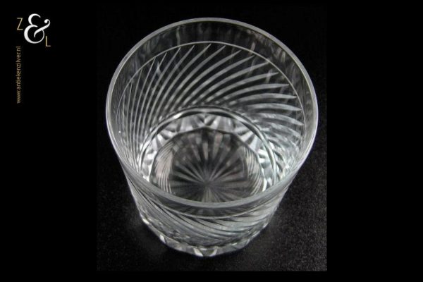 Dit gedistingeerde kristallen whiskey- whiskyglas stamt uit de tweede helft van de twintigste eeuw (zestiger jaren) en is vermoedelijk bij Baccarat in Frankrijk gemaakt. Het mondgeblazen handgeslepen en gepolijste glas is diagonaal geslepen en heeft aan de onderzijde van het glas een geslepen ster die tot aan de rand doorloopt. Het whiskey- whiskyglas weegt 195 gram is 8.3 cm hoog en heeft een diameter van 7.1 cm.