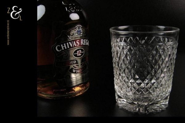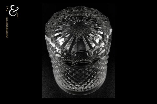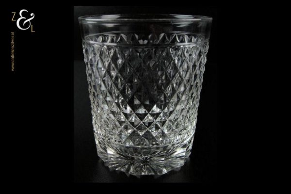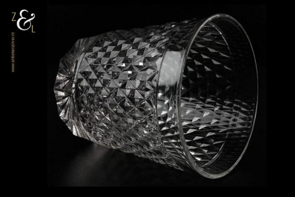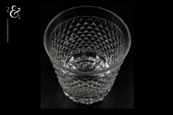 Dit royale kristallen whiskey- whiskyglas is gemaakt in Luik / Seraing België bij de glasblazerij van Val Saint Lambert aan het begin van de 20e eeuw (rond 1920) de Art Deco periode. Het mondgeblazen handgeslepen en gepolijste whiskey- whiskyglas is ruitgeslepen (diamant) heeft aan de onderzijde twaalf vlakken en in de bodem is een ster geslepen die tot aan de rand doorloopt. De tumbler weegt 303 gram is 10.1 cm hoog en heeft een diameter van 8.7 cm.