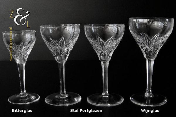 Wij hebben van dit model glas ook nog een stel portglazen artikel nummer 20280 en een bitterglas artikel nummer 20281 (zie ook de laatste afbeelding waarop alle vier de glazen worden afgebeeld).