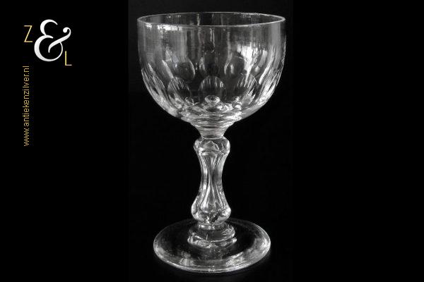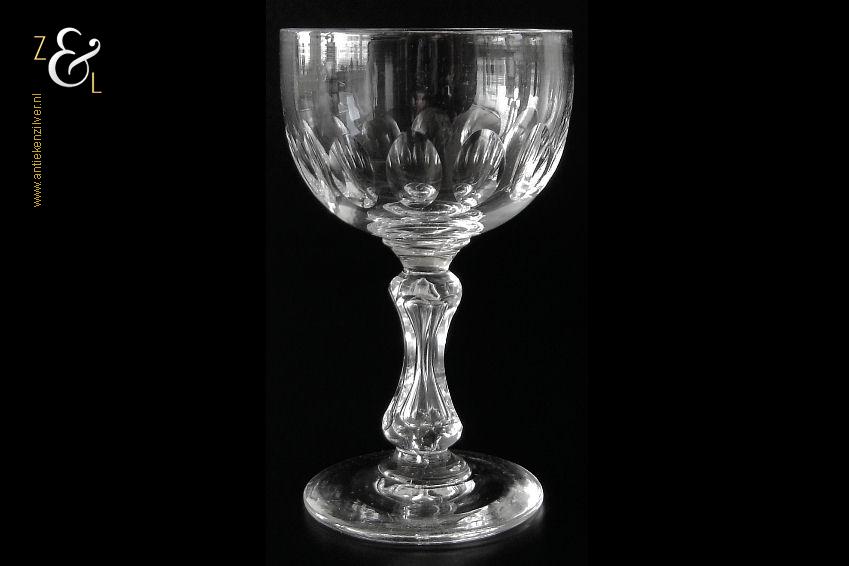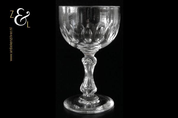 Dit mondgeblazen en geheel op de hand vervaardigde wijnglas / portglas model Stephenson is gemaakt bij de Glasfabriek Leerdam en stamt uit het begin van de 20e eeuw. Het handgeslepen en gepolijste glas heeft een zeskantige balustervormige steel en een ronde kelk met veertien geslepen olijven. Aan de onderzijde van de voet zit een gedeeltelijk in de vorm van een lens weggeslepen pontilmerk. Het wijnglas / portglas weegt 120 gram en is 11 cm hoog. De kelk heeft een diameter van 6.4 cm en de voet heeft een diameter van 5.6 cm.