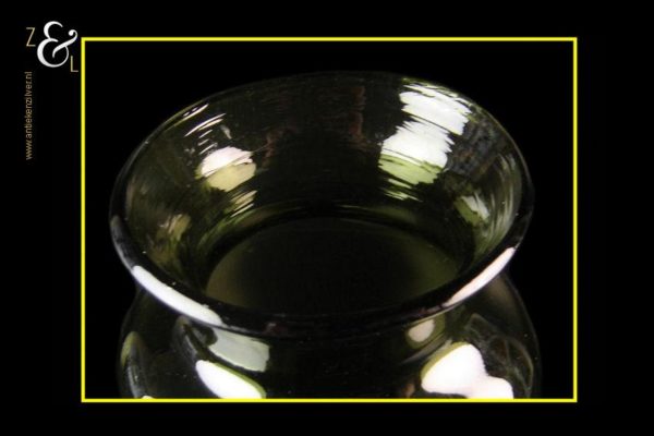 Deze groene glazen zaadfles of voorraadfles werd vroeger door de boeren gebruikt om er hun zaaigoed in te bewaren. Voor de boeren was dit zaaigoed van onschatbare waarde omdat dit zaad voor de oogst van het volgende jaar moest zorgen. Men behandelde het zaaigoed dus met veel zorg en sloeg het droog en donker op in een daarvoor bestemde fles. De met zaaigoed gevulde zaadfles werd afgesloten met perkamentpapier waarna men om de hals en het perkamentpapier een stuk touw wikkelde waaraan men een lus knoopte. Daarna hing men de zaadfles vaak hoog op aan een balk waar hij veilig en zo ver mogelijk verwijderd van ongedierte was. Deze fles stamt uit de 19e eeuw en komt uit Frankrijk. De fles weegt 1440 gram heeft een hoogte van 26 cm en een diameter van 11.4 cm de opening aan de bovenkant van de fles heeft een diameter van 9.6 cm.