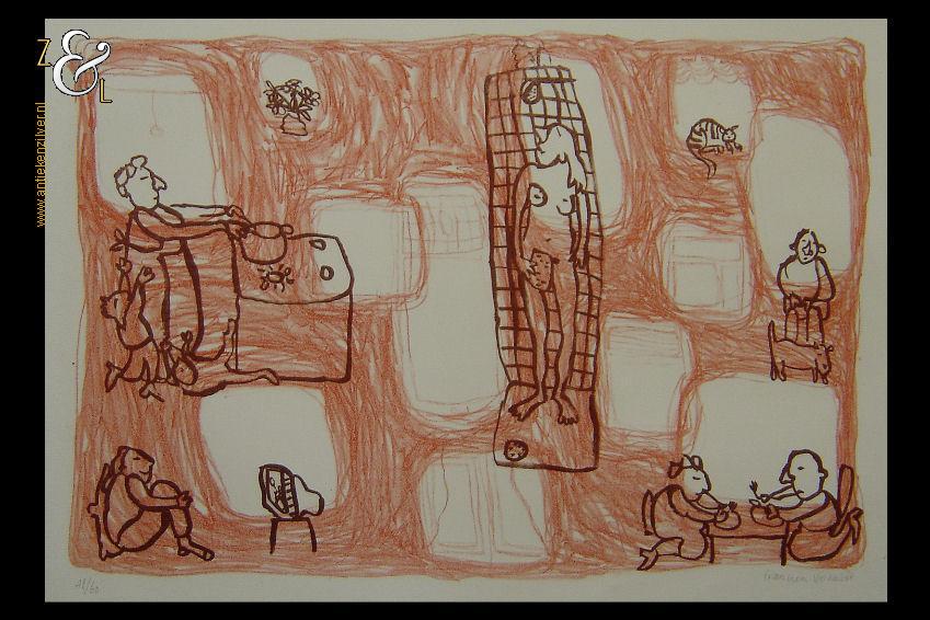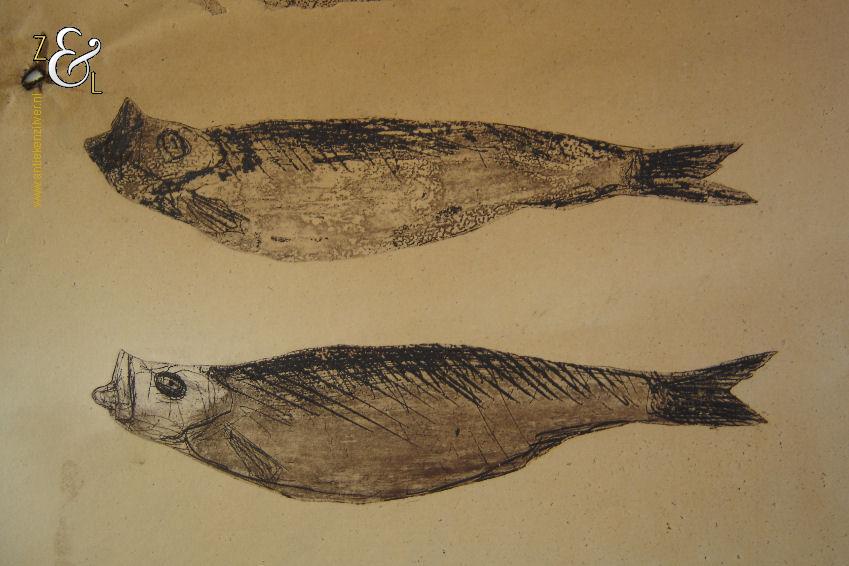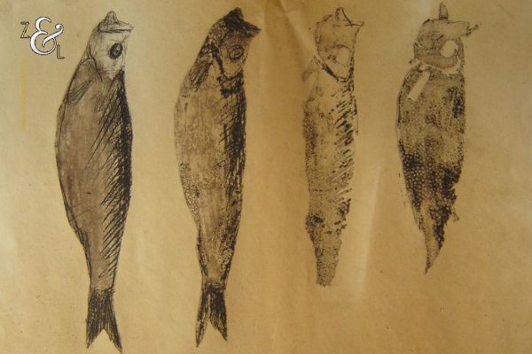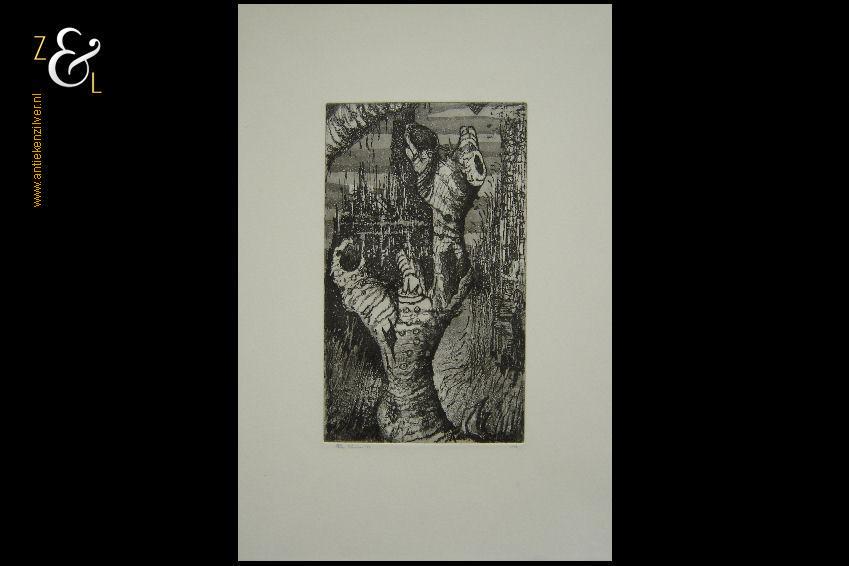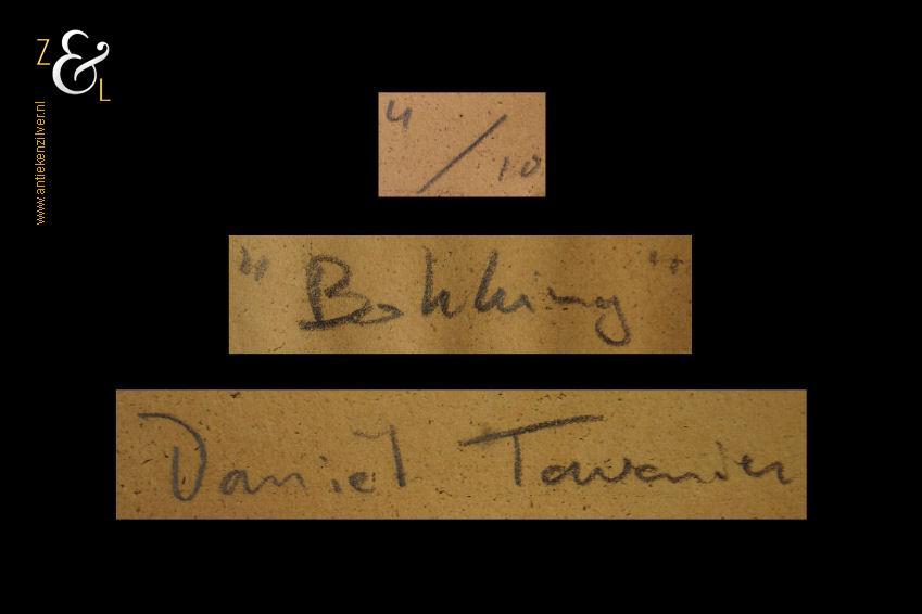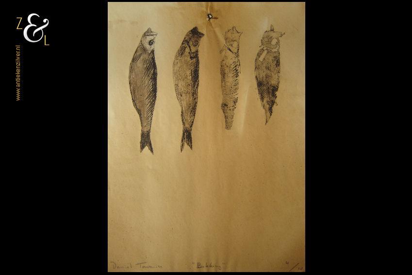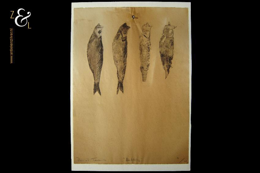 Deze ets met de titel “Bokking” is in de figuratief / experimentele stijl (Tavenier heeft deze ets laten roken in een visrokerij in zijn geboorteplaats Katwijk) gemaakt door Daniël Tavenier. De ets is in potlood linksonder gesigneerd: Daniël Tavenier, rechtsonder staat de oplage: 4/10 en midden onder staat de titel: “Bokking”. De ets is 64 cm lang bij 47.5 cm breed en op de hoeken op een vel tekenpapier geplakt.