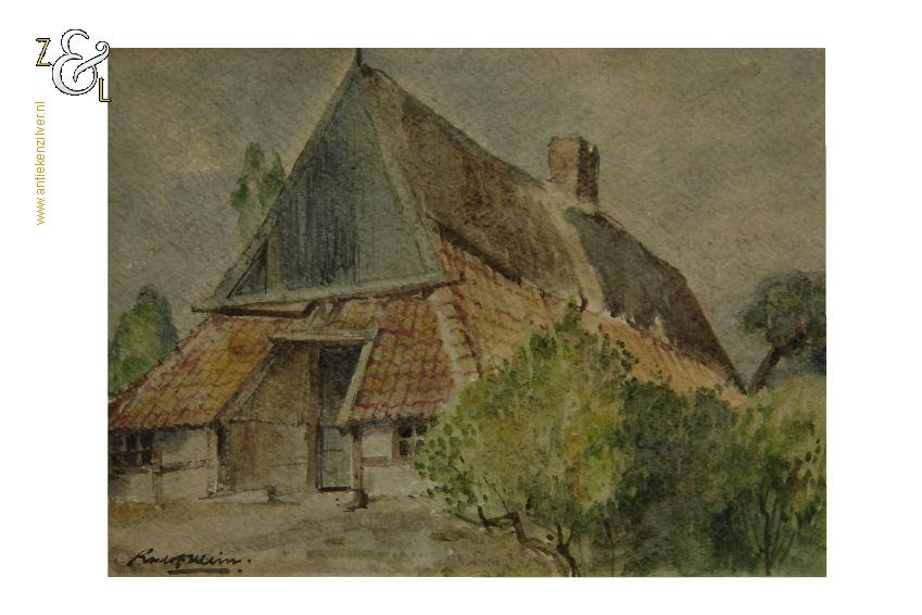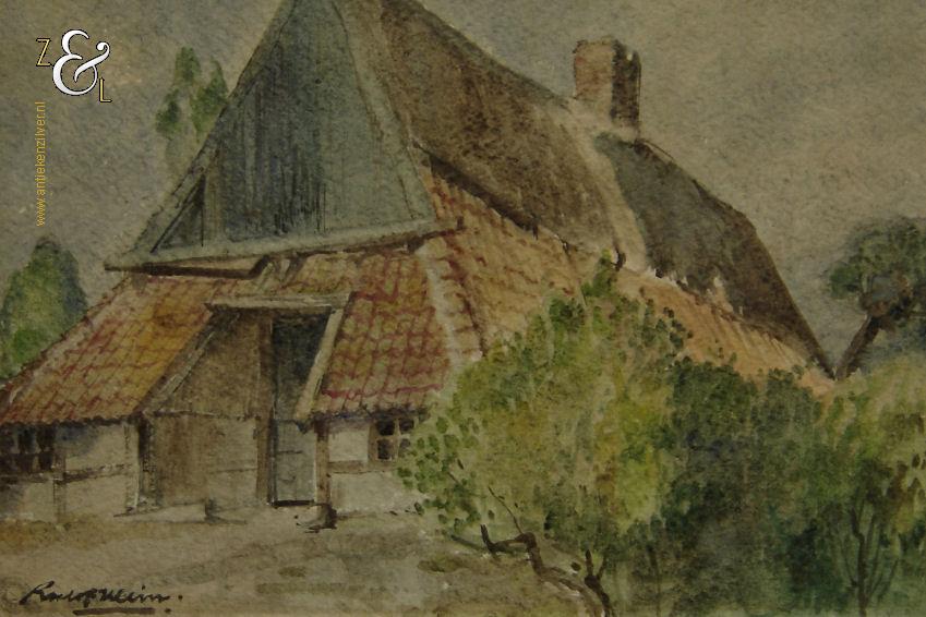 Deze aquarel met de afbeelding van een boerderij is gemaakt door Roelof Klein. Vermoedelijk is de afgebeelde boerderij er een uit de Provincie Friesland omdat daar Roelof Klein zijn oorsprong lag. De aquarel heeft aan de voorzijde linksonder het blindmerk: “Schutzmarke Schoellershammer” en is daarnaast met aquarelverf gesigneerd: Roelof Klein. De aquarel is 47 cm lang bij 35 cm breed. Bij de aquarel is een niet zuurvrije passe partout verwijderd, daarbij is rondom een klein randje verloren gegaan (afgesneden). De aquarel heeft een retoucheerlak en is licht verkleurd.