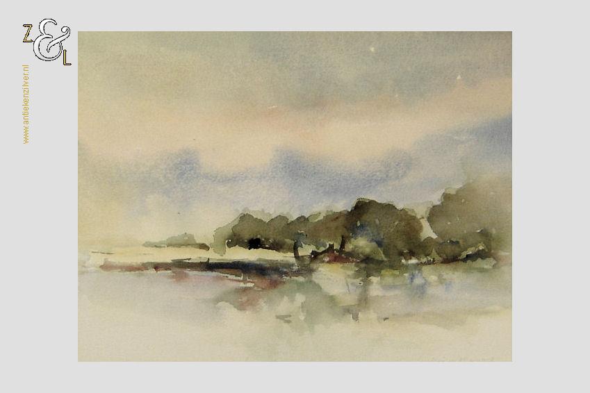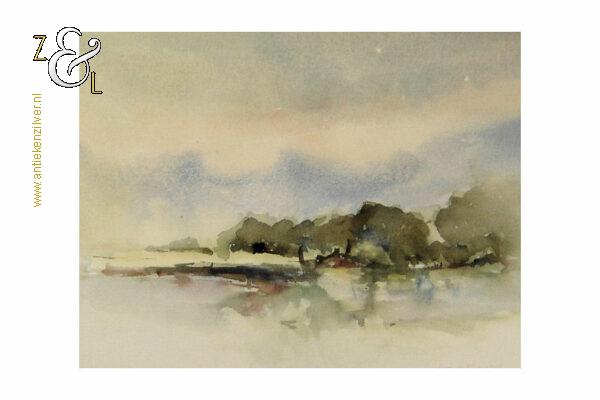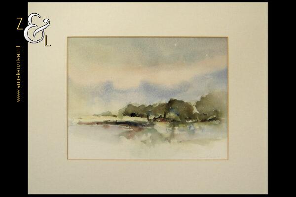 Deze aquarel met de titel “Landschap Berkhout” is gemaakt door Willie van Haard. De aquarel is in potlood rechtsonder gesigneerd Willie van Haard. De aquarel is aan de binnenzijde van het passe partout gemeten 32.5 cm lang bij 24.7 cm breed. De buitenzijde van het passe partout is 49.9 cm lang bij 40.1 cm breed.