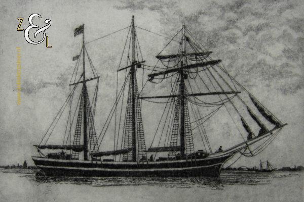 *De Charlotte Rhodes was een driemast topzeilschoener die internationale bekendheid kreeg door haar rol in de populaire BBC TV-serie “The Onedin Line”*. Het schip dat in 1904 bij de scheepswerf van F. Hoffman in Fjelleborn Denemarken werd gebouwd had jarenlang vracht van Noord-Europa naar Amerika vervoerd over de wilde noordelijke Atlantische Oceaan. Eind jaren zestig lag het schip ongebruikt en vervallen in een kleine haven in het noorden van Denemarken en werd het door James (Jim “Mac”) Mackreth een gepensioneerde Britse piloot aangekocht en gerestaureerd. Vanaf 1971 charterde de BBC het schip voor het filmen van de “The Onedin Line”. Hier was ze gemakkelijk te herkennen aan haar zwarte romp en rode zeilen. Doordat een zware storm in 1975 de scheepsromp van de Charlotte Rhodes dusdanig beschadigde dat deze niet meer zeewaardig was, werd zij verkocht aan Nederlandse eigenaren die haar gebruikten in binnenwateren en beschutte wateren. Het einde van de Charlotte Rhodes kwam op 12 oktober 1979 toen het schip dat in de Amsterdamse Haven lag afgemeerd door brandstichting verwoest werd.