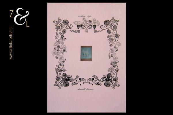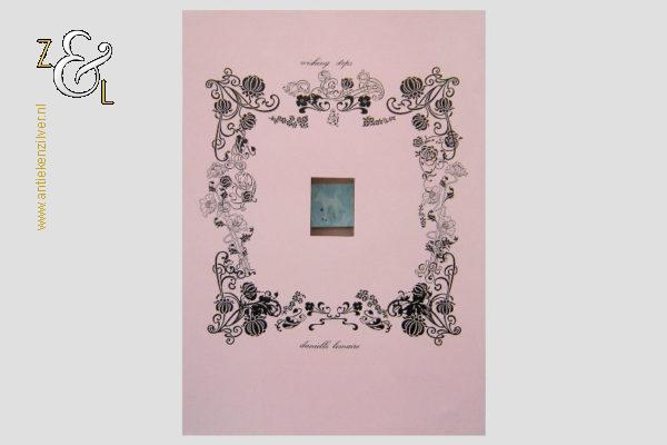 Deze kopie / fotografie met de titel “Wishing Steps” is gemaakt door Danielle Lemaire. De kopie / fotografie is gedrukt op roze 120 grams papier en op de achterzijde staat in potlood linksonder de oplage 40/300 nummer 40 van 300 en rechtsonder het jaartal 1996. Op de voorzijde staat aan de bovenkant de titel wishing steps en aan de onderkant danielle lemaire in het midden is een kleine foto geplakt. De kopie / fotografie heeft de afmeting van een A4, 29.7 cm lang bij 21 cm breed.