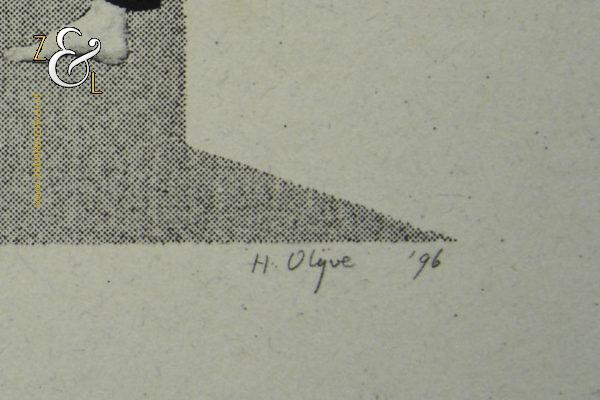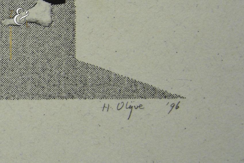 Deze kopie met de titel “Bericht voor de vissers” is gemaakt door Henk Olijve. De kopie is met zwart gedrukt op beige / grijs 140 grams papier en is onder de afbeelding met potlood rechtsonder gesigneerd en gedateerd H. Olijve ’96 en linksonder staat de oplage 40/300 nummer 40 van 300. De kopie heeft de afmeting van een A4, 29.7 cm lang bij 21 cm breed. De kopie heeft buiten de afbeelding aan de rechter bovenkant een héél lichte vouw.