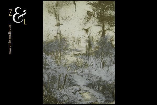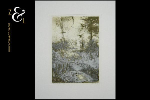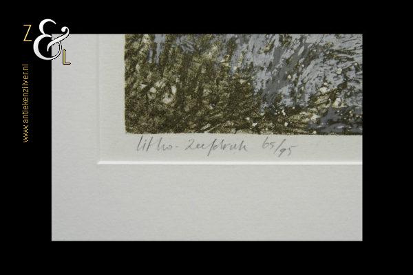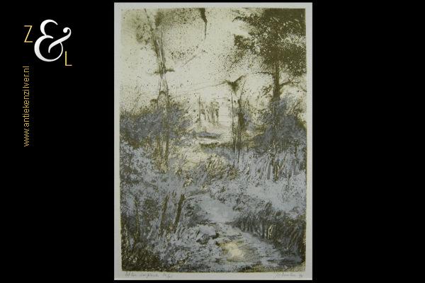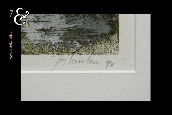 Deze litho / zeefdruk met de voorstelling van een rivier met bomen is gemaakt door Jos Keulen. De litho / zeefdruk is rechtsonder in potlood gesigneerd en gedateerd Jos Keulen ’94 en linksonder staat litho / zeefdruk en de oplage 65/95 nummer 65 van 95. De litho / zeefdruk is aan de binnenzijde van het passe partout gemeten 34.6 cm lang bij 24.3 cm breed, de buitenzijde van het passe partout is 50 cm lang bij 40 cm breed.