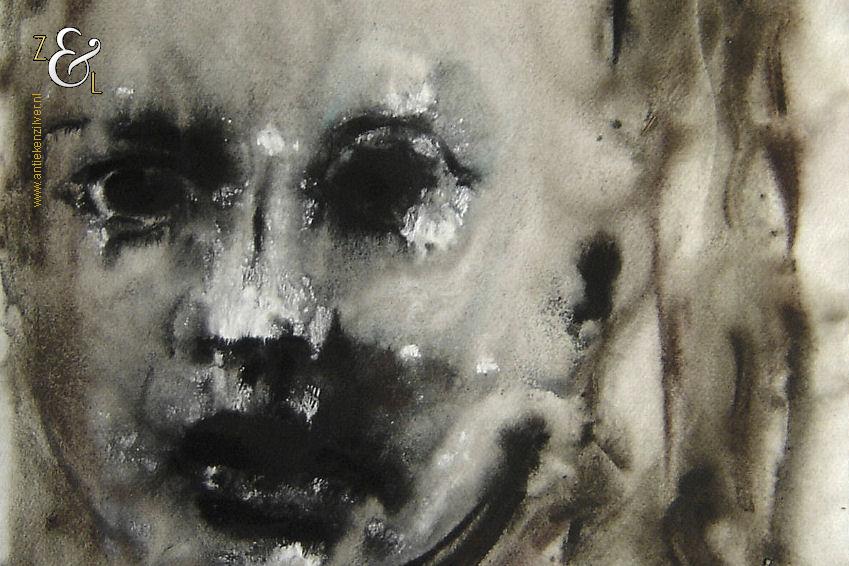 Deze aquarel is gemaakt door de Bredase kunstenaar Jacob Hartger (Jaap) de Vries. De aquarel met de voorstelling van een kinderportret is in de figuratieve expressionistische stijl geschilderd op aquarelpapier. De aquarel die niet gesigneerd is (er bestaan op het internet foto’s van het atelier van Jaap de Vries waar een soortgelijke aquarel te zien is) heeft op de hoeken punaisegaatjes en is voorzien van een watermerk. Het werk dat vermoedelijk uit 2004 stamt (zie ook het werk van Jaap de Vries artikelnummer 60290 op onze website) is 65 cm lang bij 50 cm breed.
