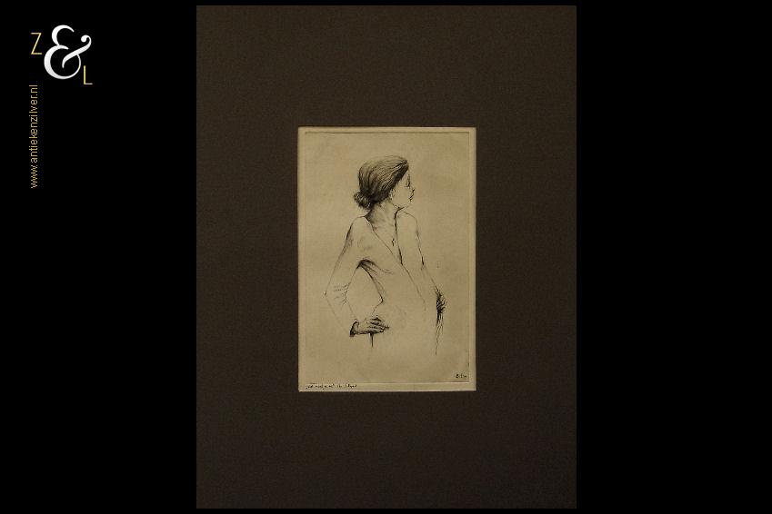 Deze aquarel is gemaakt door de Bredase kunstenaar Jacob Hartger (Jaap) de Vries. De aquarel met de titel “Tim als jong meisje” is in de figuratieve expressionistische stijl geschilderd op aquarelpapier. De aquarel die niet gesigneerd is (er bestaan op het internet foto’s van het atelier van Jaap de Vries waar een soortgelijke aquarel te zien is) heeft op de hoeken punaisegaatjes en is voorzien van een watermerk. Het werk dat uit 2004 stamt is 65 cm lang bij 50 cm breed (zie ook het werk van Jaap de Vries artikelnummer 60289 op onze website).