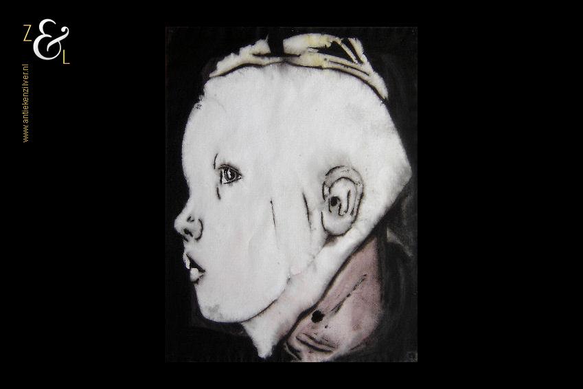 Deze aquarel is gemaakt door de Bredase kunstenaar Jacob Hartger (Jaap) de Vries. De aquarel met de titel “Tim als jong meisje” is in de figuratieve expressionistische stijl geschilderd op aquarelpapier. De aquarel die niet gesigneerd is (er bestaan op het internet foto’s van het atelier van Jaap de Vries waar een soortgelijke aquarel te zien is) heeft op de hoeken punaisegaatjes en is voorzien van een watermerk. Het werk dat uit 2004 stamt is 65 cm lang bij 50 cm breed (zie ook het werk van Jaap de Vries artikelnummer 60289 op onze website).