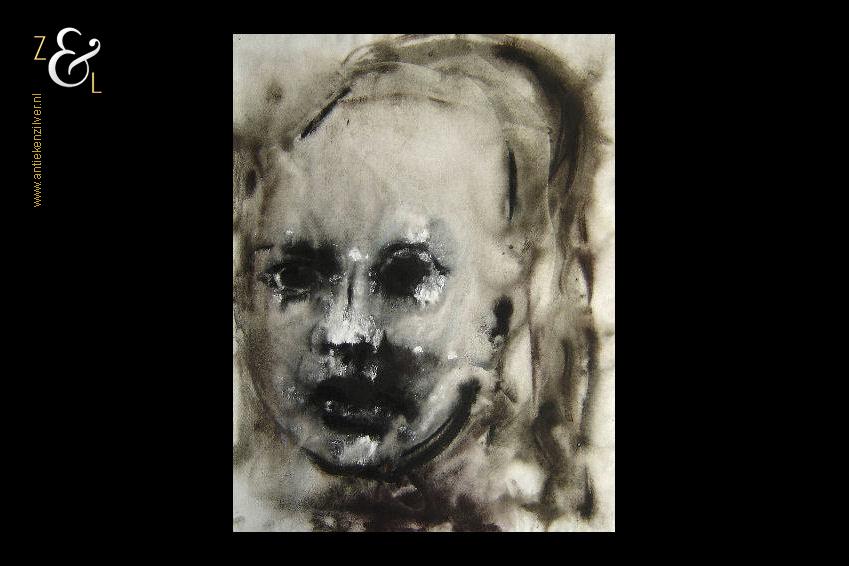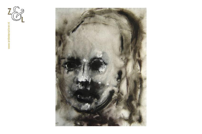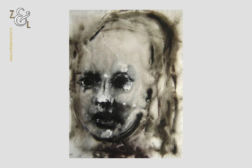 Deze aquarel is gemaakt door de Bredase kunstenaar Jacob Hartger (Jaap) de Vries. De aquarel met de voorstelling van een kinderportret is in de figuratieve expressionistische stijl geschilderd op aquarelpapier. De aquarel die niet gesigneerd is (er bestaan op het internet foto’s van het atelier van Jaap de Vries waar een soortgelijke aquarel te zien is) heeft op de hoeken punaisegaatjes en is voorzien van een watermerk. Het werk dat vermoedelijk uit 2004 stamt (zie ook het werk van Jaap de Vries artikelnummer 60290 op onze website) is 65 cm lang bij 50 cm breed.