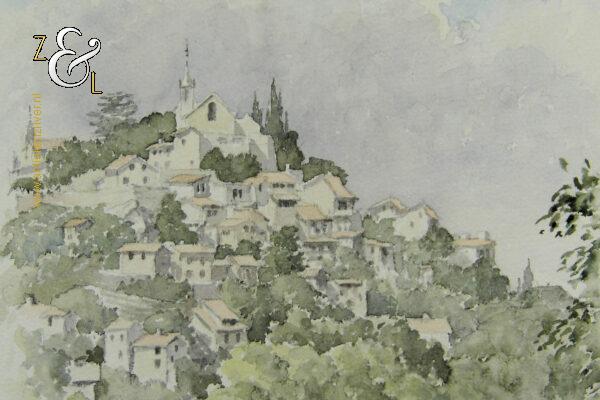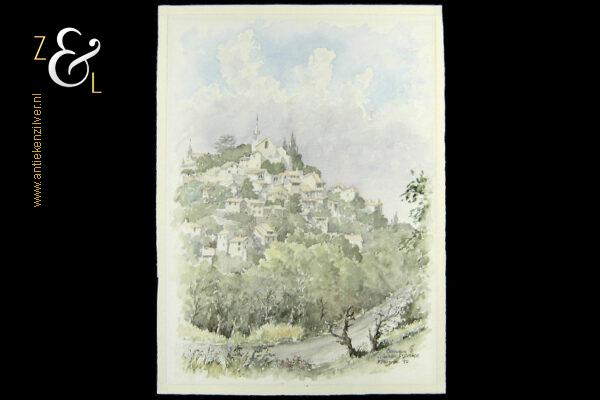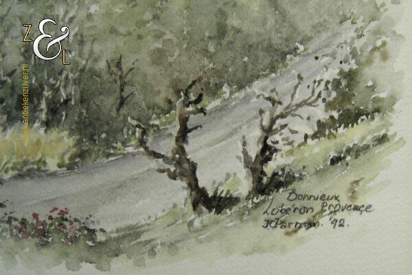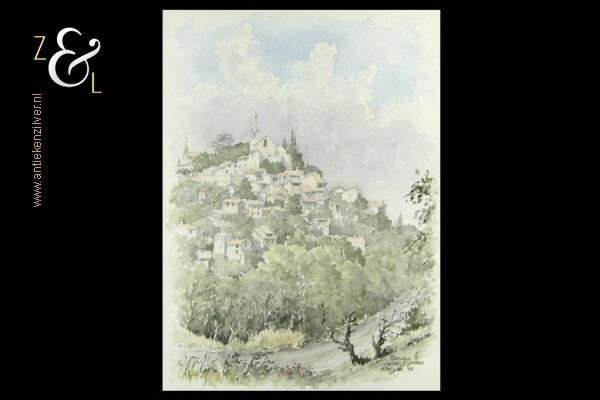 Deze aquarel met de afbeelding van het Franse dorpje Bonnieux Lubéron in de Provence is gemaakt door Jan Cornelis Pasman. De aquarel is in potlood rechtsonder gesigneerd en gedateerd J.C. Pasman ’92 met daarboven de titel Bonnieux Lubéron Provence. De aquarel is 38.3 cm lang bij 28.3 cm breed.