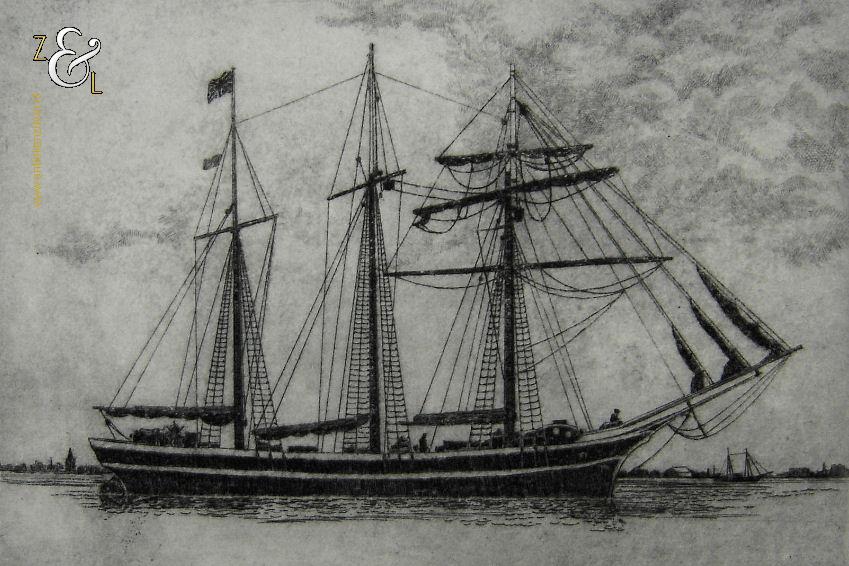 *De Charlotte Rhodes was een driemast topzeilschoener die internationale bekendheid kreeg door haar rol in de populaire BBC TV-serie “The Onedin Line”*. Het schip dat in 1904 bij de scheepswerf van F. Hoffman in Fjelleborn Denemarken werd gebouwd had jarenlang vracht van Noord-Europa naar Amerika vervoerd over de wilde noordelijke Atlantische Oceaan. Eind jaren zestig lag het schip ongebruikt en vervallen in een kleine haven in het noorden van Denemarken en werd het door James (Jim “Mac”) Mackreth een gepensioneerde Britse piloot aangekocht en gerestaureerd. Vanaf 1971 charterde de BBC het schip voor het filmen van de “The Onedin Line”. Hier was ze gemakkelijk te herkennen aan haar zwarte romp en rode zeilen. Doordat een zware storm in 1975 de scheepsromp van de Charlotte Rhodes dusdanig beschadigde dat deze niet meer zeewaardig was, werd zij verkocht aan Nederlandse eigenaren die haar gebruikten in binnenwateren en beschutte wateren. Het einde van de Charlotte Rhodes kwam op 12 oktober 1979 toen het schip dat in de Amsterdamse Haven lag afgemeerd door brandstichting verwoest werd.