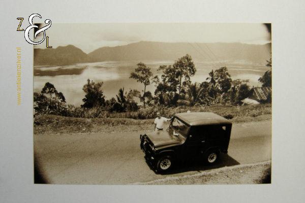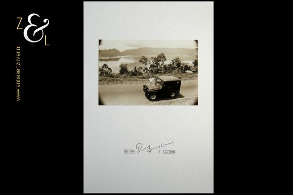 Deze foto met de titel “Groeten uit Indonesië” is gemaakt door Perry van Duynhoven. De foto is afgedrukt op Kodak fotopapier en heeft de bruinige sepia kleur. De foto die met dubbelzijdig tape op zwaar wit papier geplakt is heeft links onder de foto een stempel met 02 1996, in het midden de signatuur van Perry van Duynhoven en rechts daarvan een stempel met de oplage 40/300 nummer 40 van 300. Het papier is aan de buitenzijde gemeten 29.5 cm lang bij 20 cm breed, de foto zelf is 15 cm lang bij 10 cm breed.
