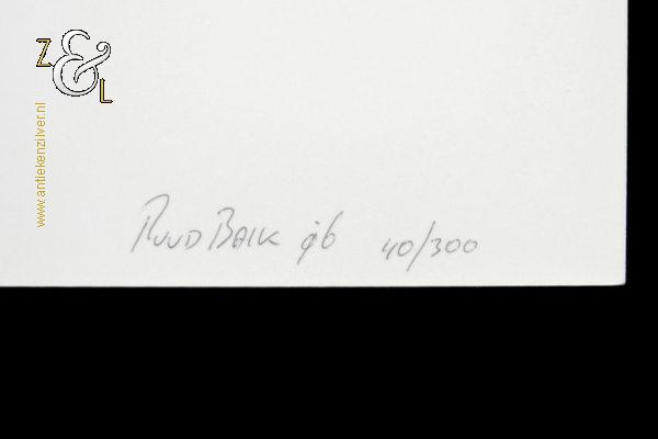 gedrukt op glanzend 270 grams fotopapier en is op de achterzijde rechtsonder in potlood gesigneerd en gedateerd Ruud Balk ’96 met daarnaast de oplage 40/300 nummer 40 van 300. De foto heeft de afmeting van een A4, 29.7 cm lang bij 21 cm breed de afbeelding is 12.5 cm lang bij 8.5 cm breed.