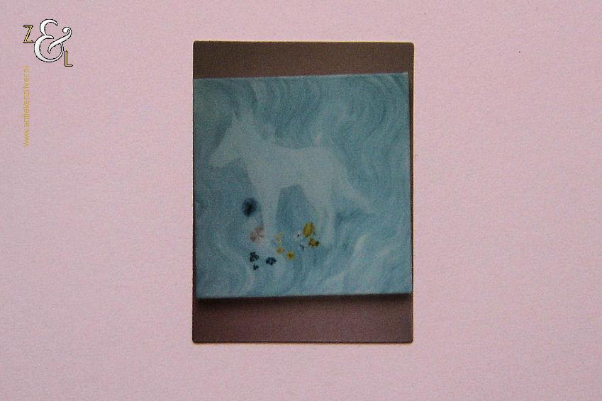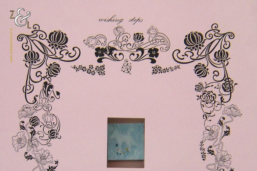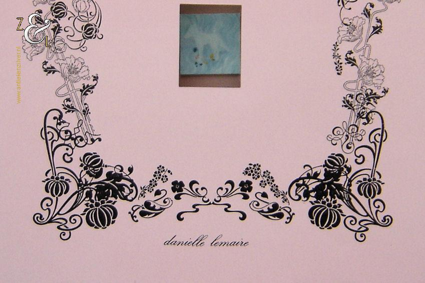 Deze kopie / fotografie met de titel “Wishing Steps” is gemaakt door Danielle Lemaire. De kopie / fotografie is gedrukt op roze 120 grams papier en op de achterzijde staat in potlood linksonder de oplage 40/300 nummer 40 van 300 en rechtsonder het jaartal 1996. Op de voorzijde staat aan de bovenkant de titel wishing steps en aan de onderkant danielle lemaire in het midden is een kleine foto geplakt. De kopie / fotografie heeft de afmeting van een A4, 29.7 cm lang bij 21 cm breed.